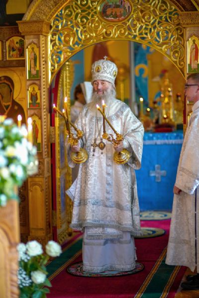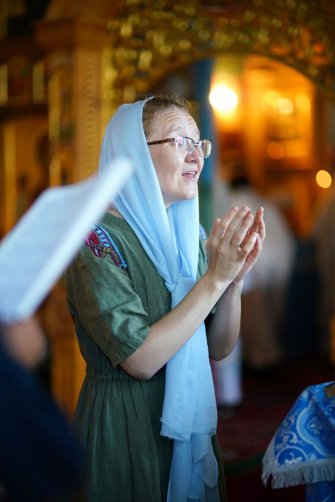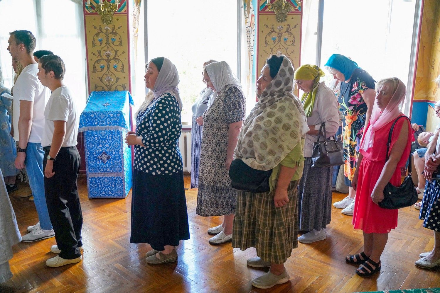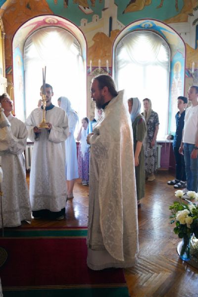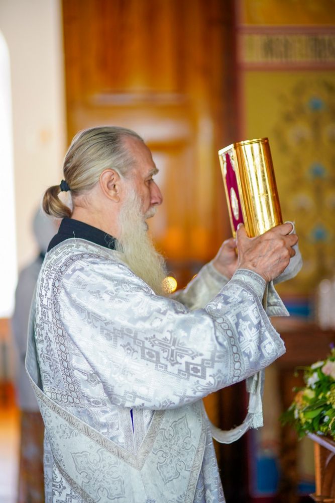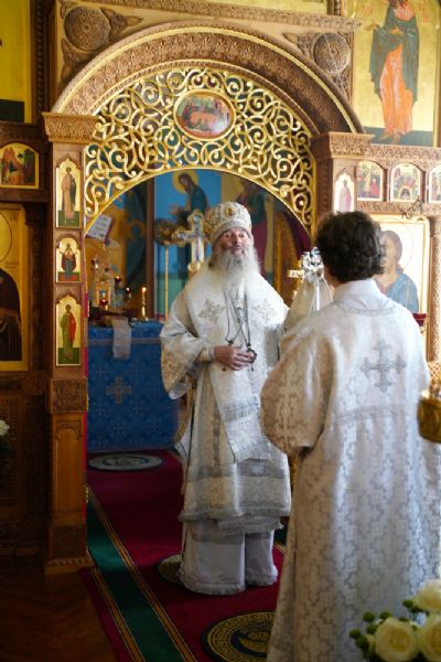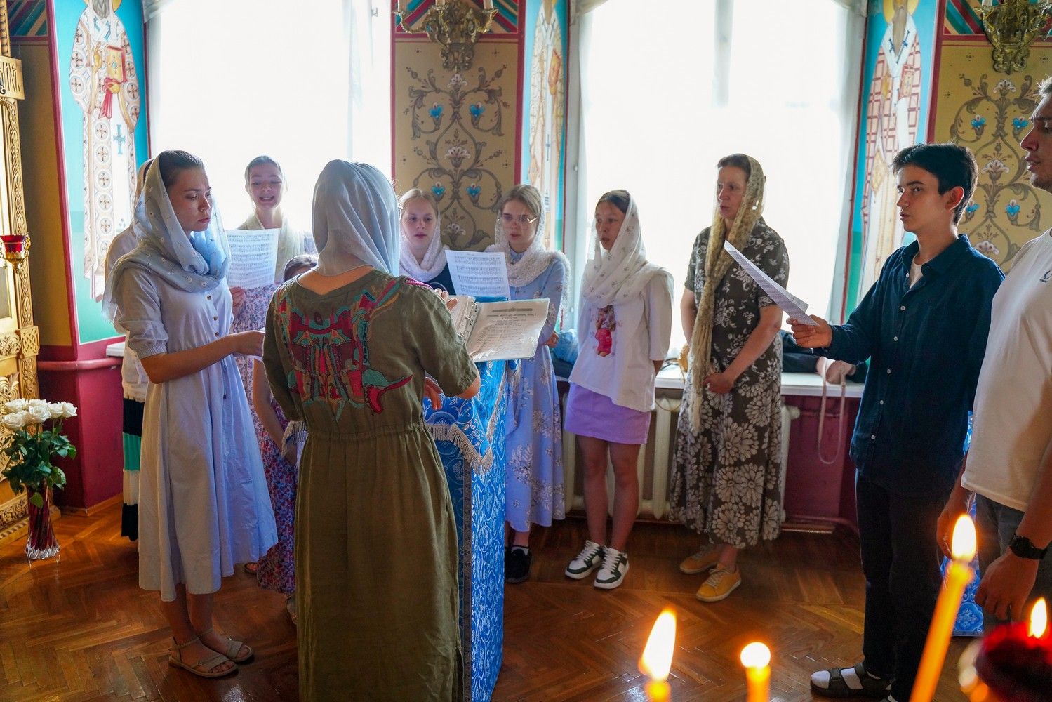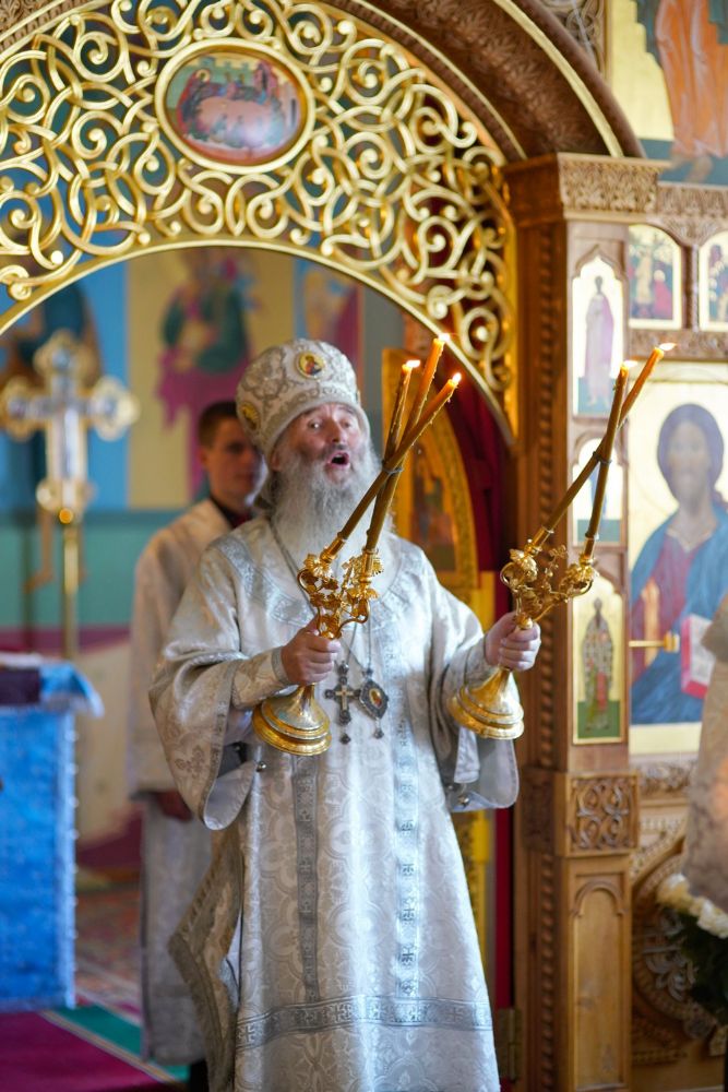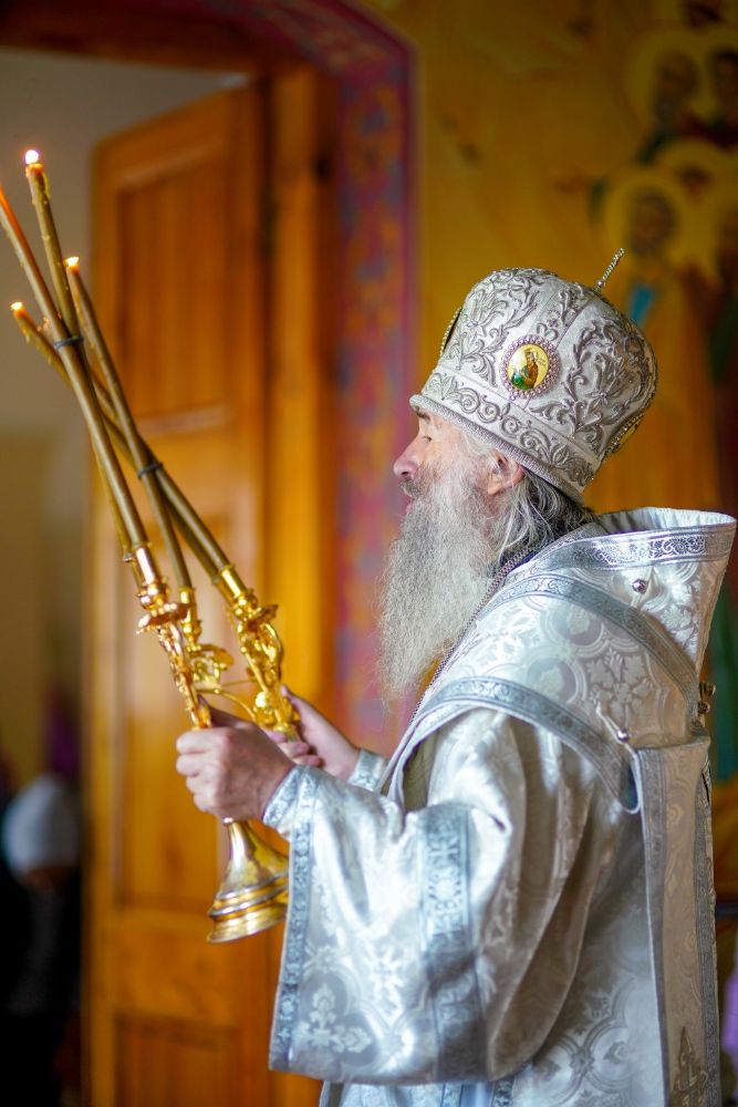 Владыке сослужили секретарь Йошкар-Олинского епархиального управления иеромонах Серафим (Пасанаев) и протодиакон Михаил Козловский. Песнопения исполнял детско-юношеский хор «Благовест» под управлением регента Татьяны Черновой.