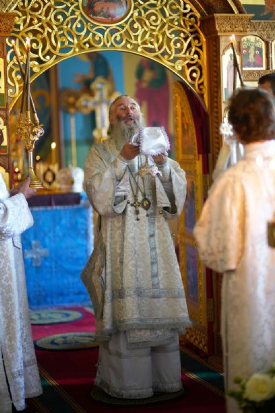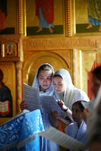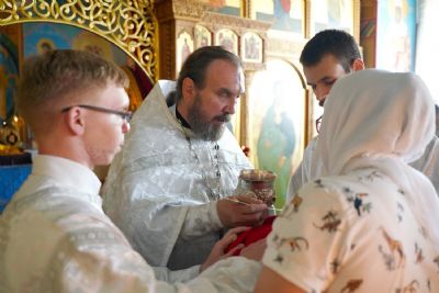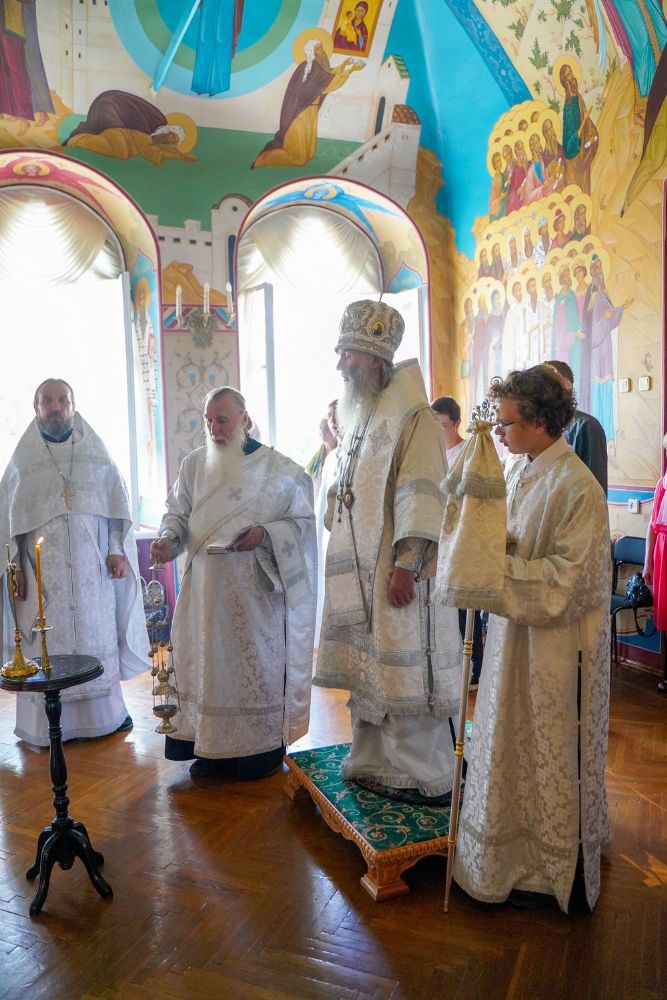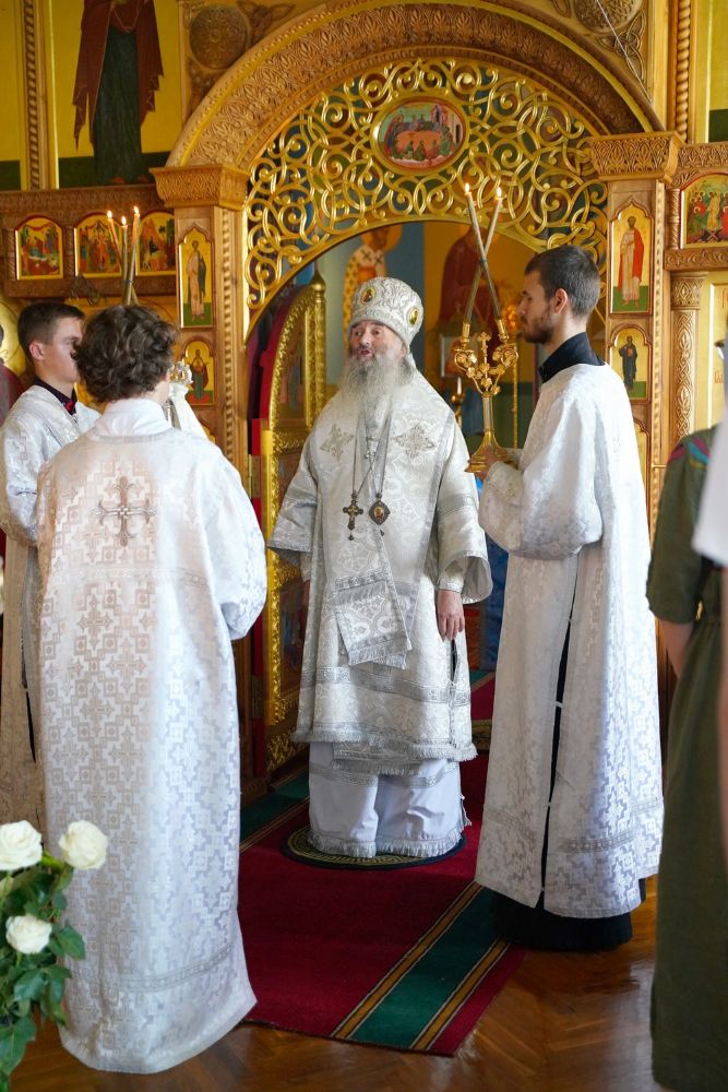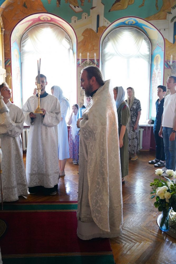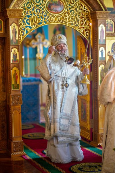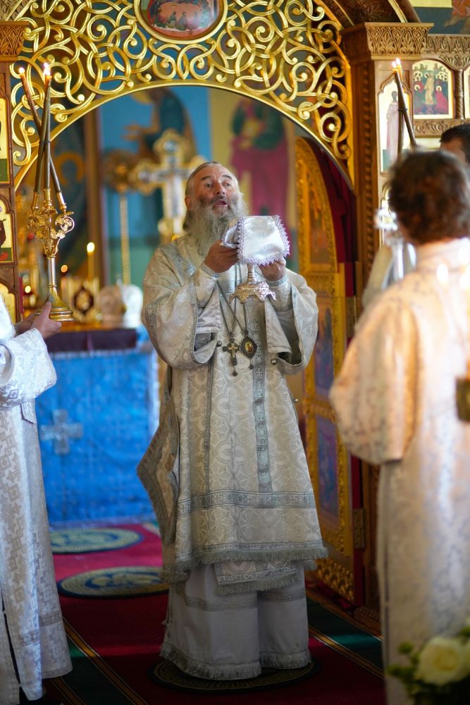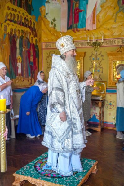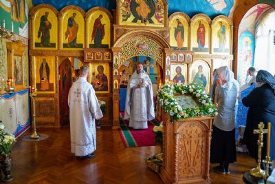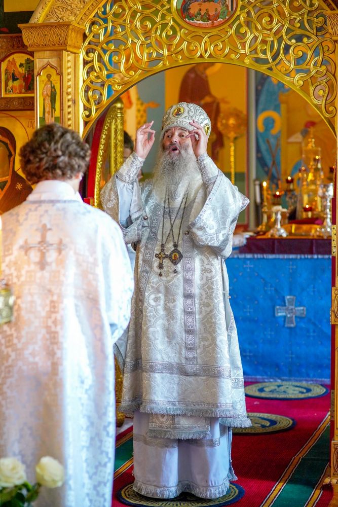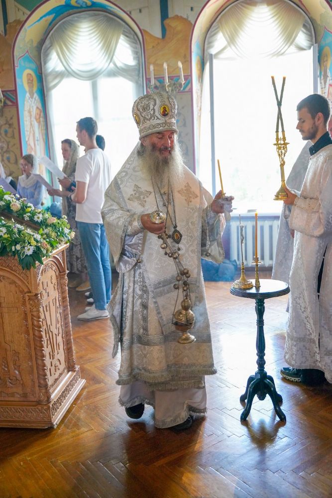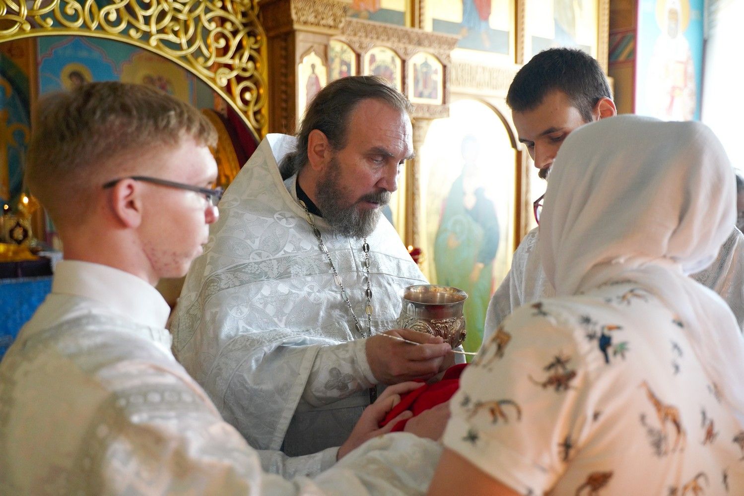 Владыке сослужили секретарь Йошкар-Олинского епархиального управления иеромонах Серафим (Пасанаев) и протодиакон Михаил Козловский. Песнопения исполнял детско-юношеский хор «Благовест» под управлением регента Татьяны Черновой.