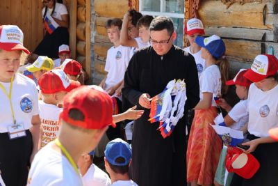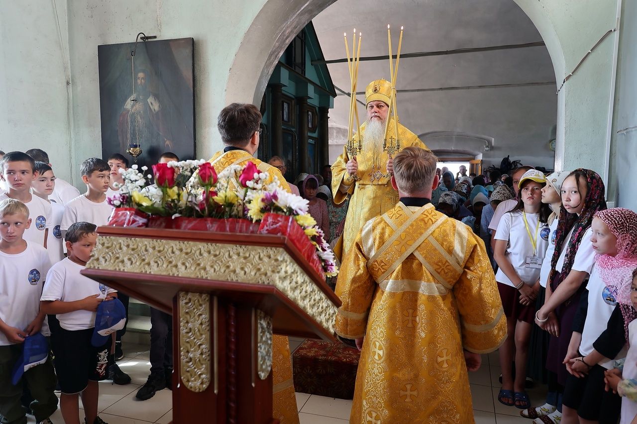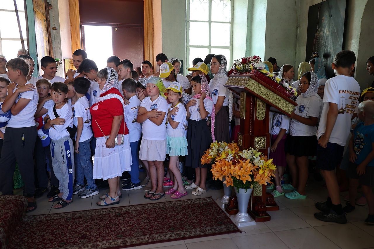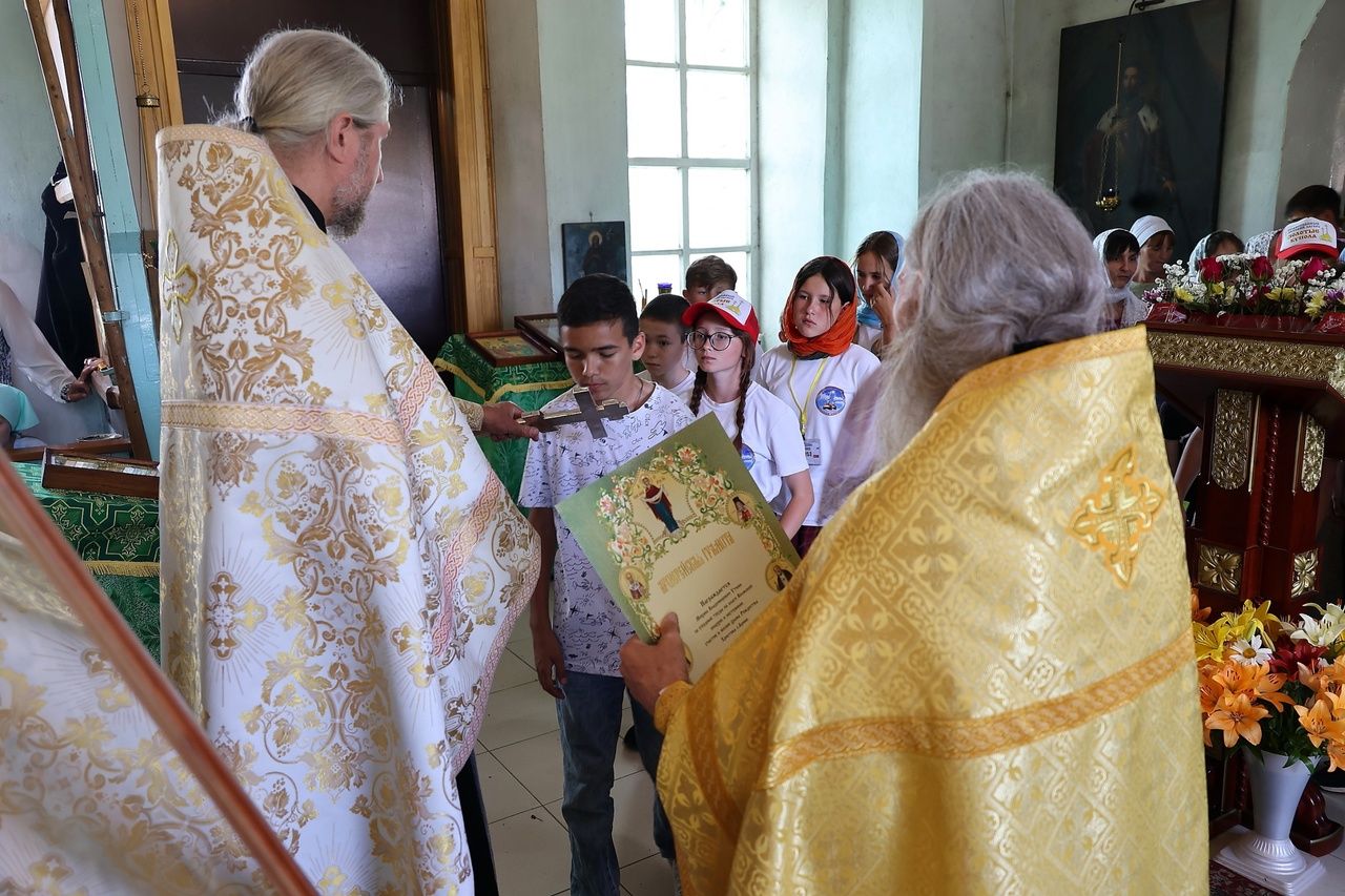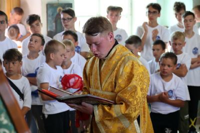 На богослужении молились дети из православного лагеря «Золотые купола».