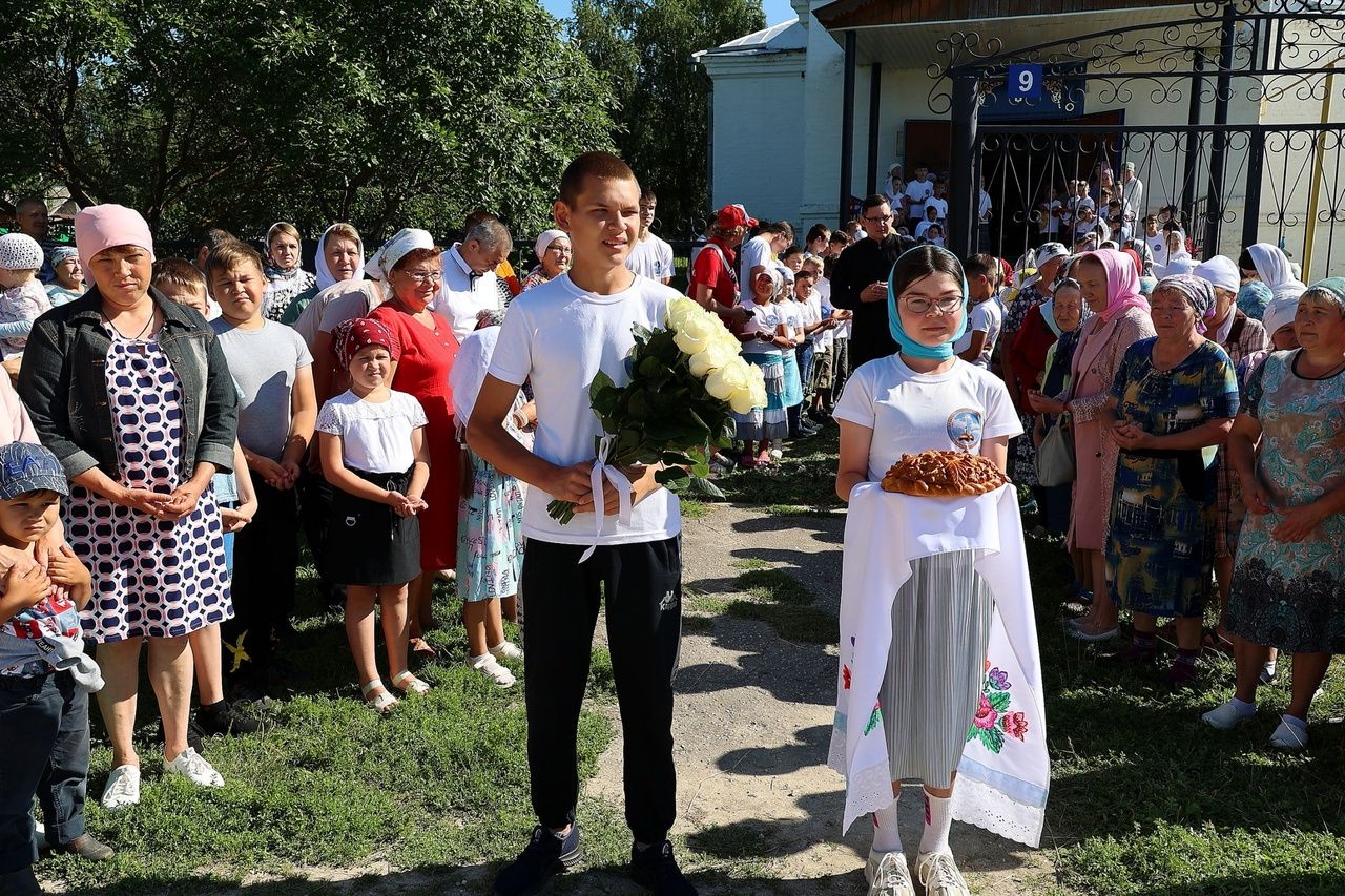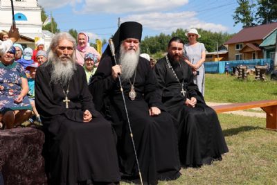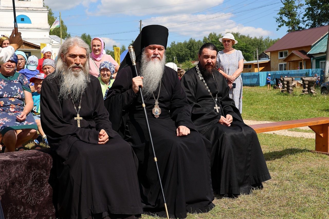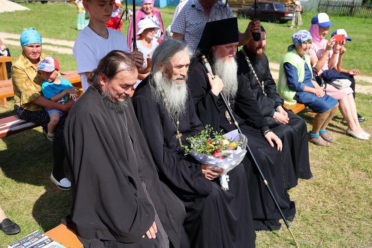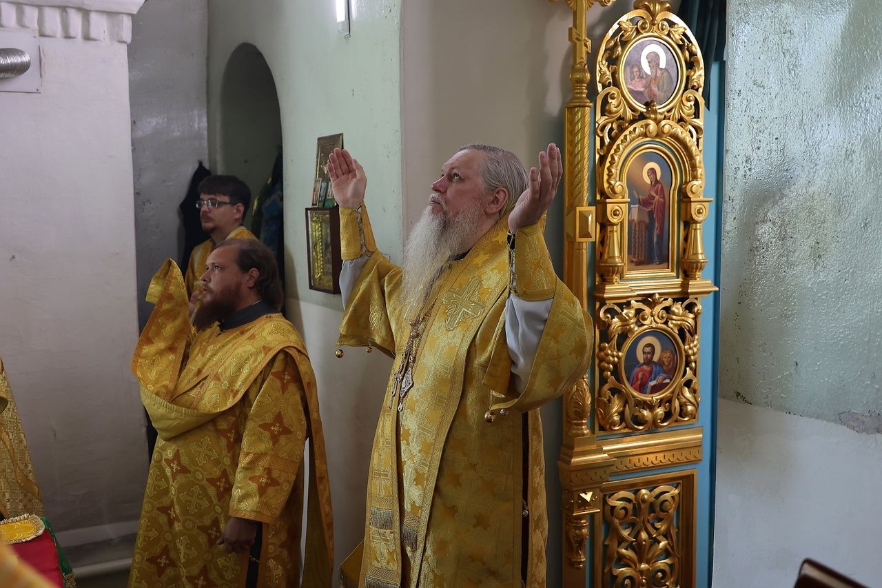 Архипастырю сослужили: настоятель храма протоиерей Николай Чузаев, настоятель храма Богоявления Господня п. Морки протоиерей Леонтий Очетов, настоятель Свято-Троицкого храма с. Сотнур иерей Игорь Сапаев, настоятель храма иконы Богородицы «Казанская» с. Шиньша иерей Евгений Шамаев, клирик Никольского кафедрального собора г. Волжск диакон Иоанн Захаров.