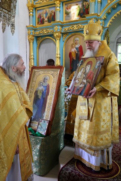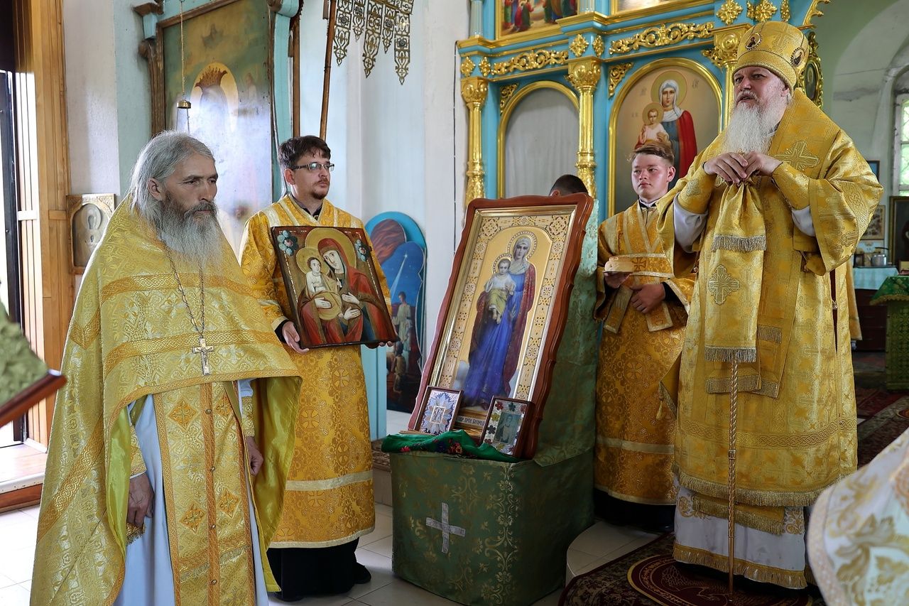 Епископ Феофан вручил в дар протоиерею Николаю Чузаева икону Пресвятой Богородицы «Троеручица», так как день его священнической хиротонии весьма близок с днём памяти этого образа, и именно этот образ является особенной защитой Марийской митрополии, которая была образована в этот день.