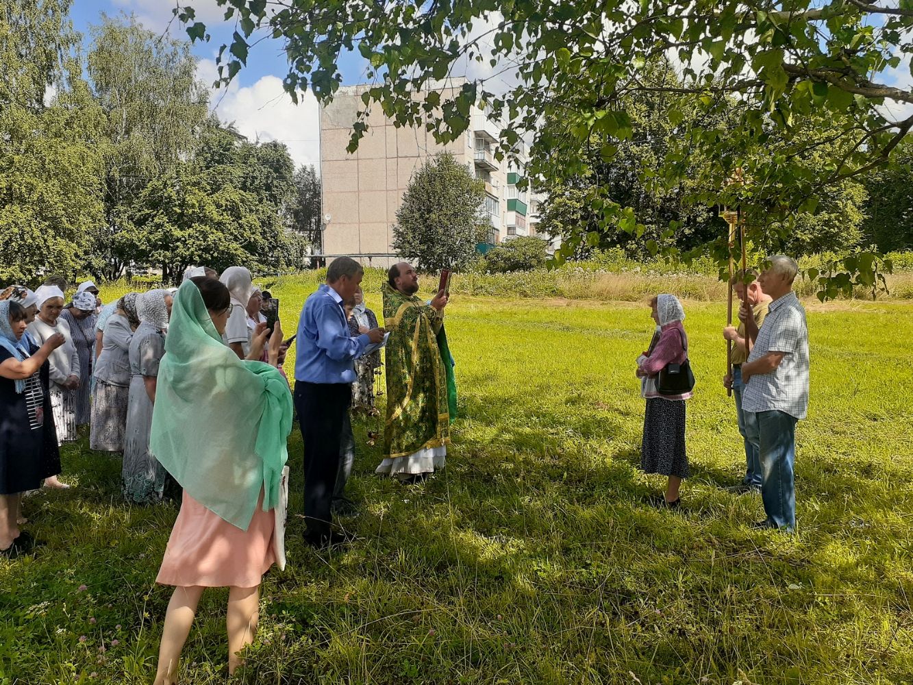 Несмотря на жаркую погоду, все стояли, вслушиваясь в слова молитв. Служба проводилась на церковнославянском и марийском языках. После окончания Литургии и проповеди священника все участники пошли крестным ходом к месту будущего строительства храма, где был совершен молебен преподобному Серафиму, в честь которого и будет построен храм. В настоящее время идет согласование документов для получения разрешения на строительства храма. По окончании богослужения все были приглашены на совместную трапезу. Сами жители помогли собрать вкусное угощение.