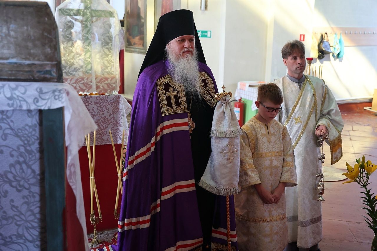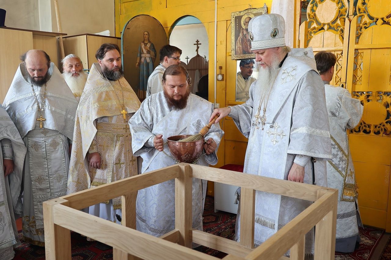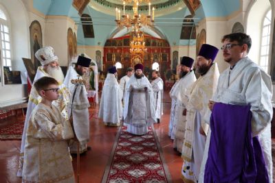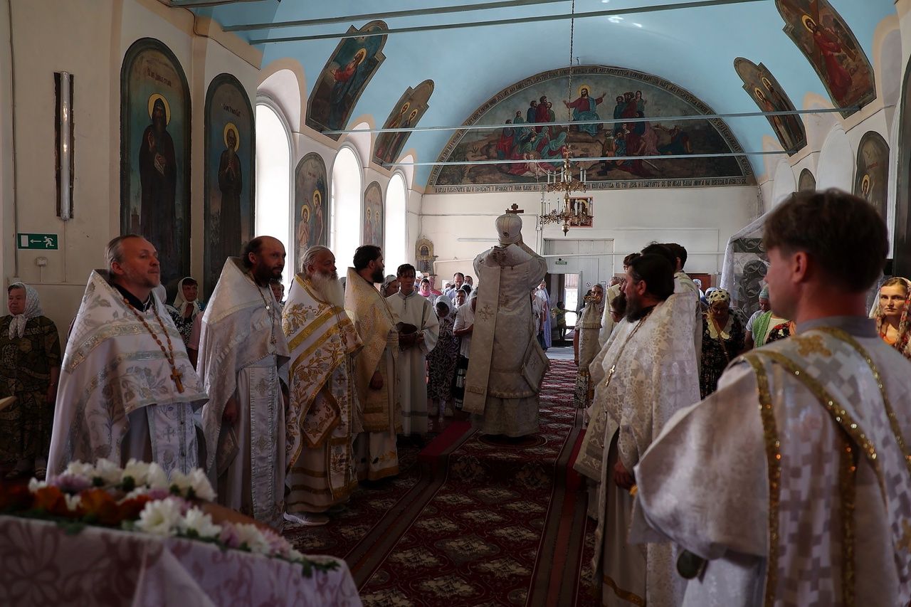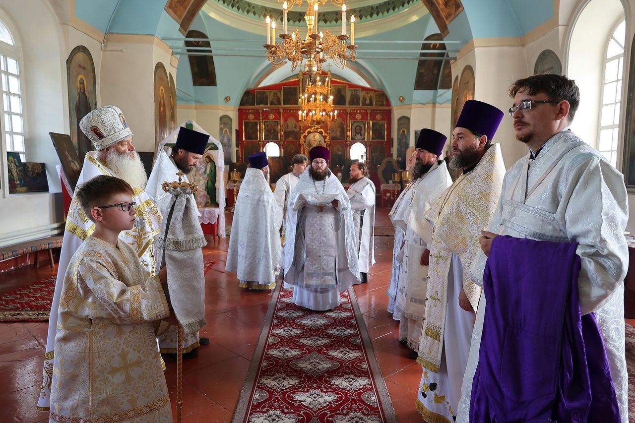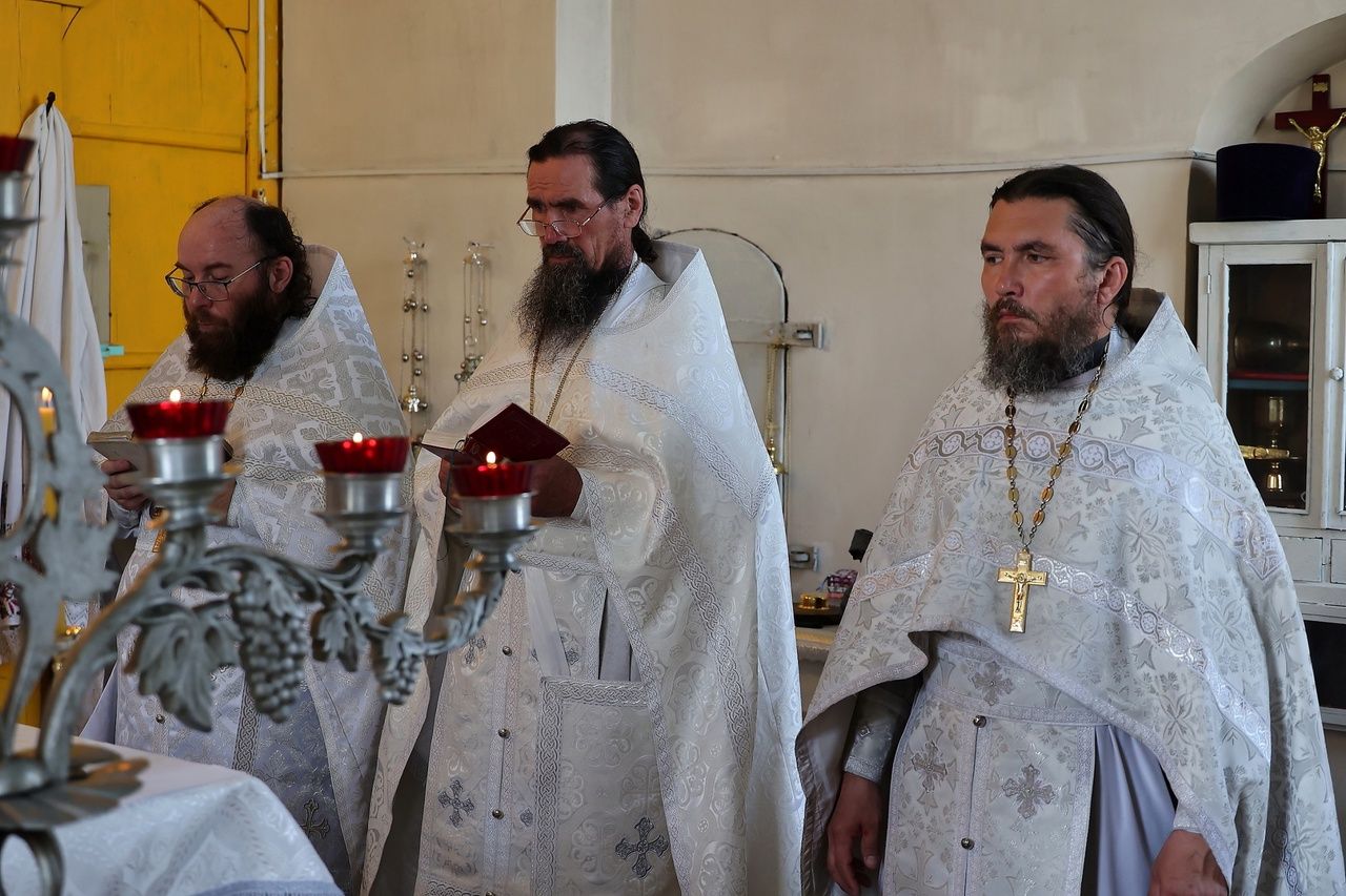Архипастырю сослужили: настоятель храма иерей Сергий Целищев, священники Северного церковного округа, клирик Никольского кафедрального собора г. Волжска диакон Иоанн Захаров.
