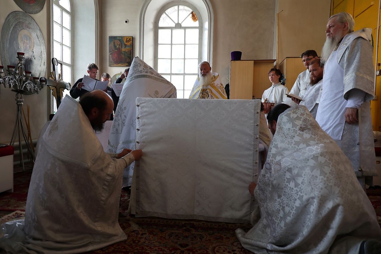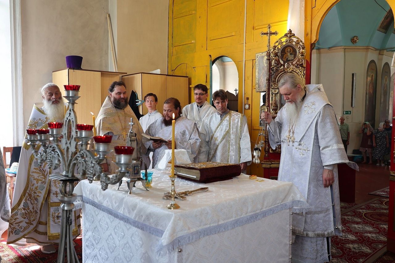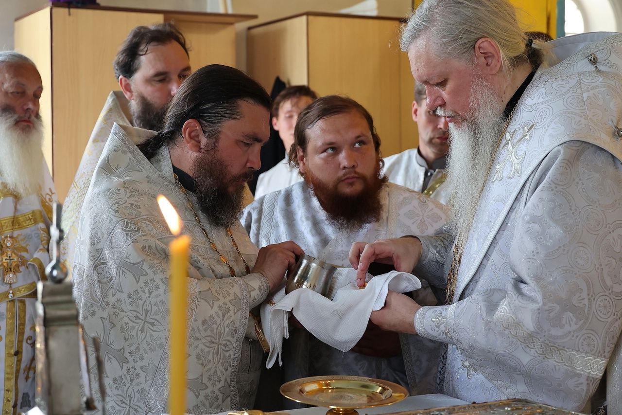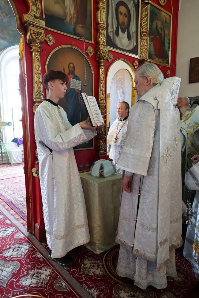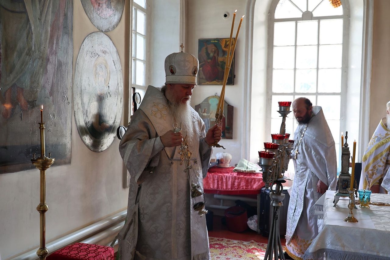 Архипастырю сослужили: настоятель храма иерей Сергий Целищев, священники Северного церковного округа, клирик Никольского кафедрального собора г. Волжска диакон Иоанн Захаров.