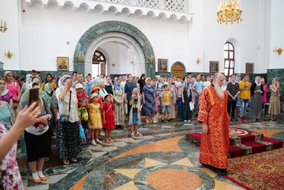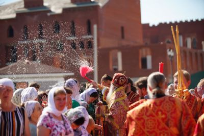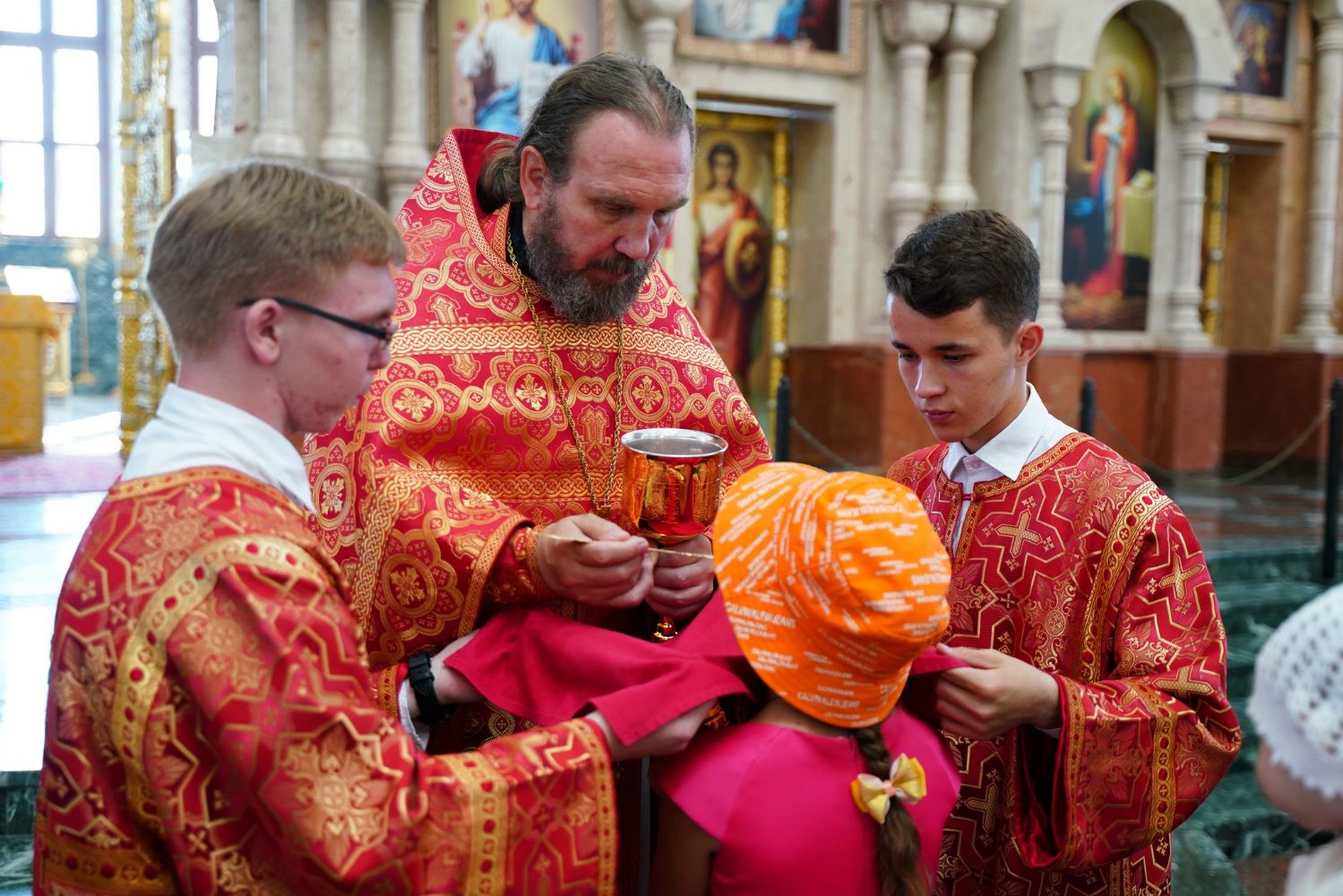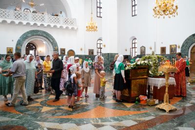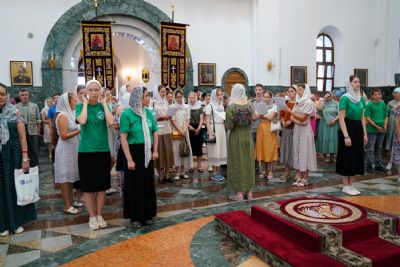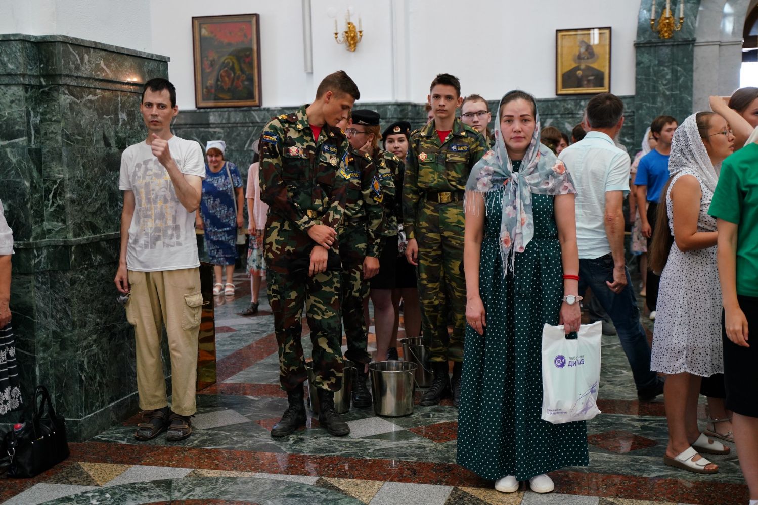 За богослужением молились молодые люди, съехавшиеся на этот праздник со всей республики: учащиеся воскресных школ, участники молодежных объединении, православные добровольцы, кадеты, патриотические клубы.