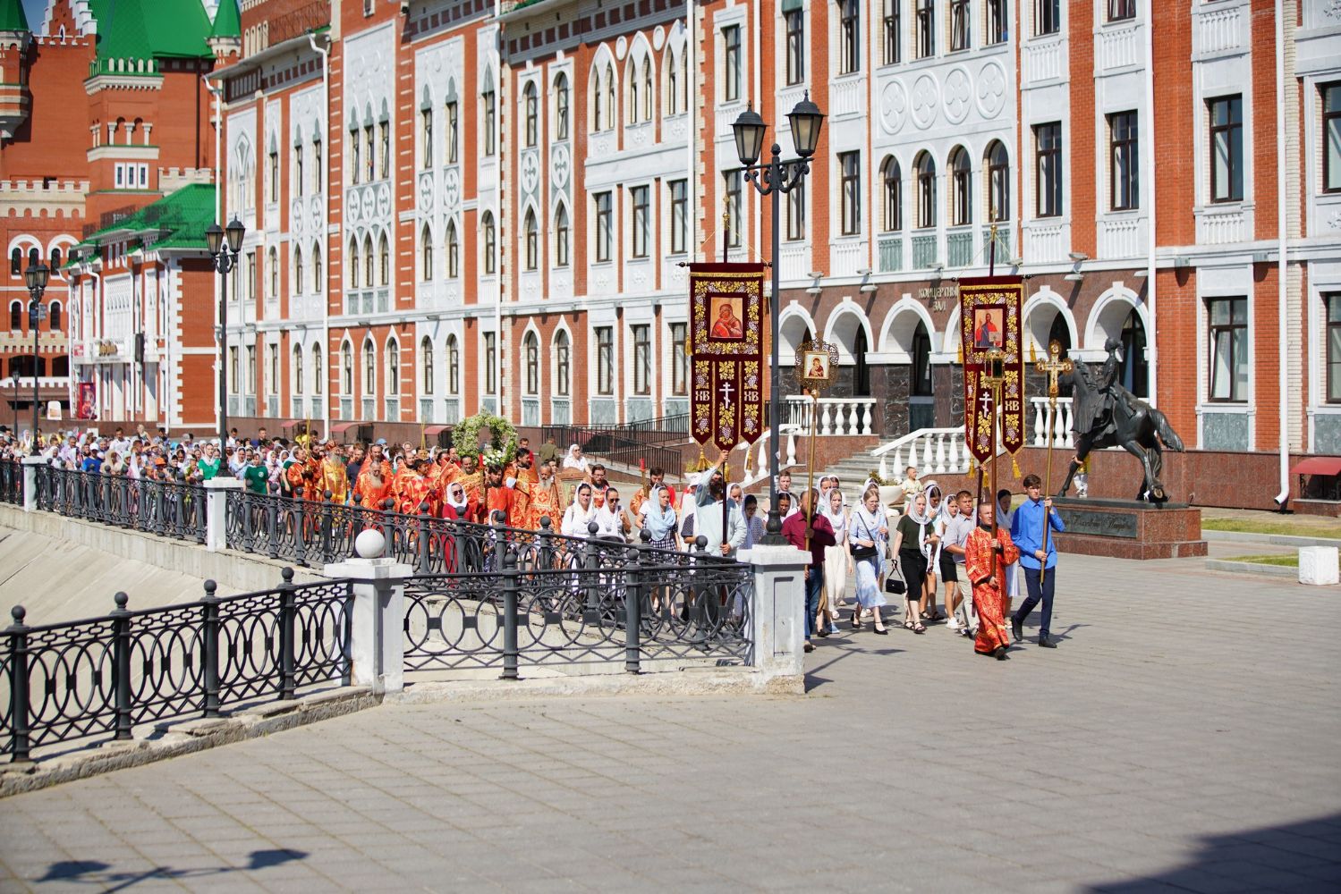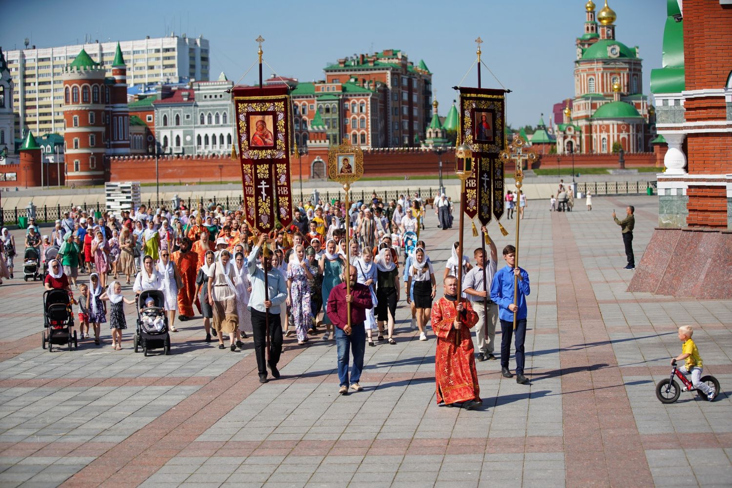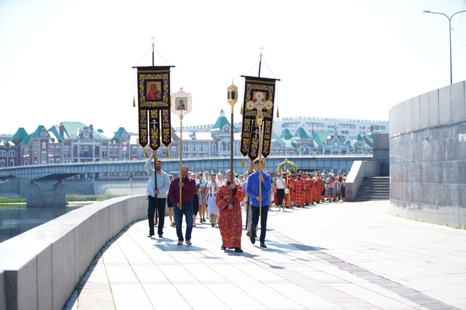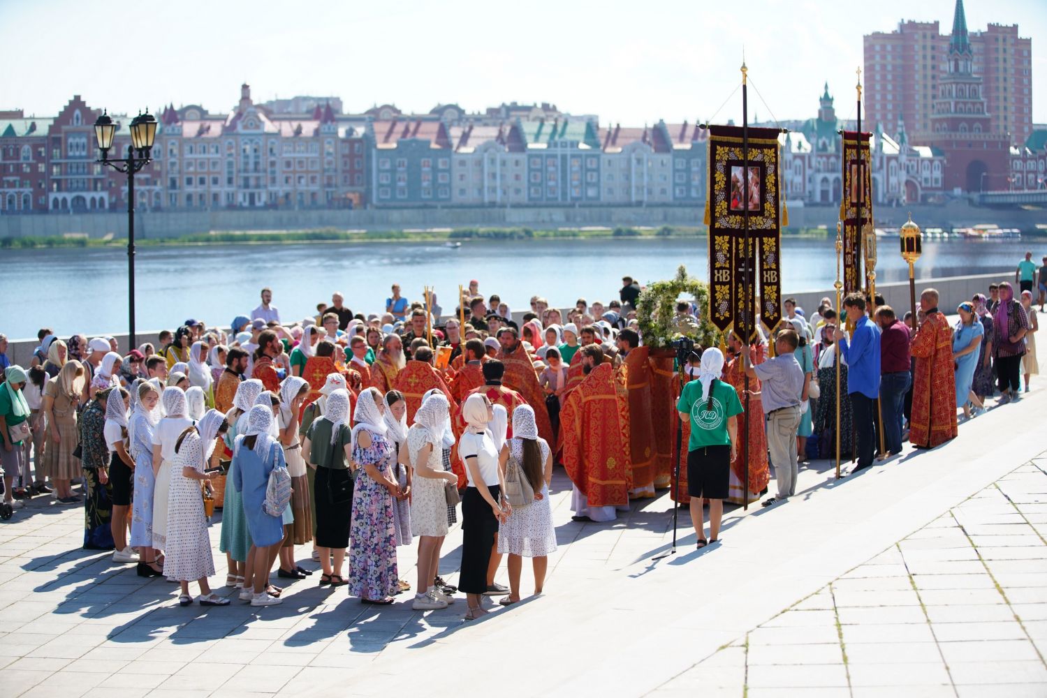 После Божественной литургии по набережной реки Малая Кокшага прошел молодежный крестный ход. Возглавил его митрополит Иоанн с сослужащим духовенством. В связи со сложной эпидемиологической обстановкой в 2020 и 2021 годах крестный ход не проводился. Но в этом году традиция была возобновлена.