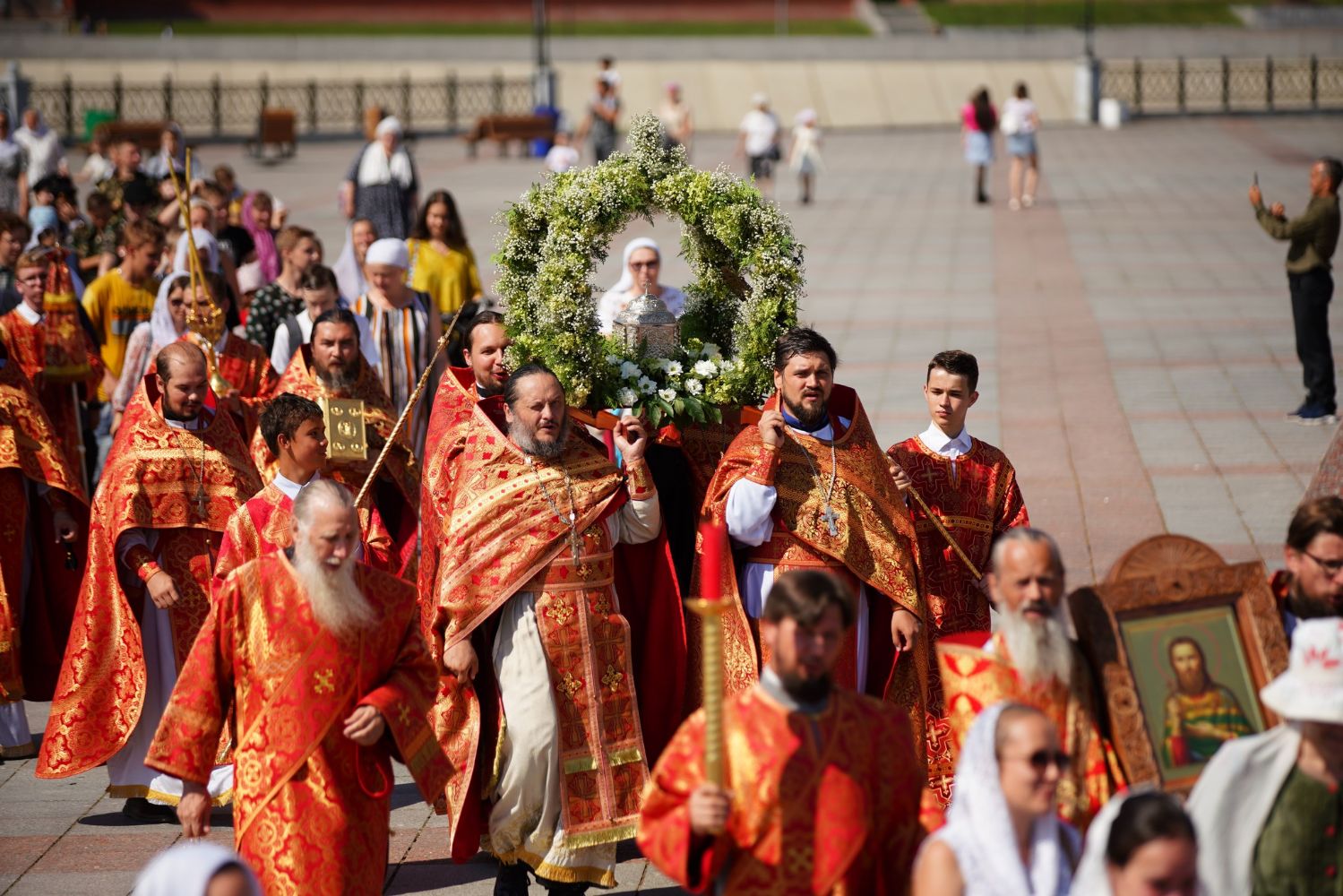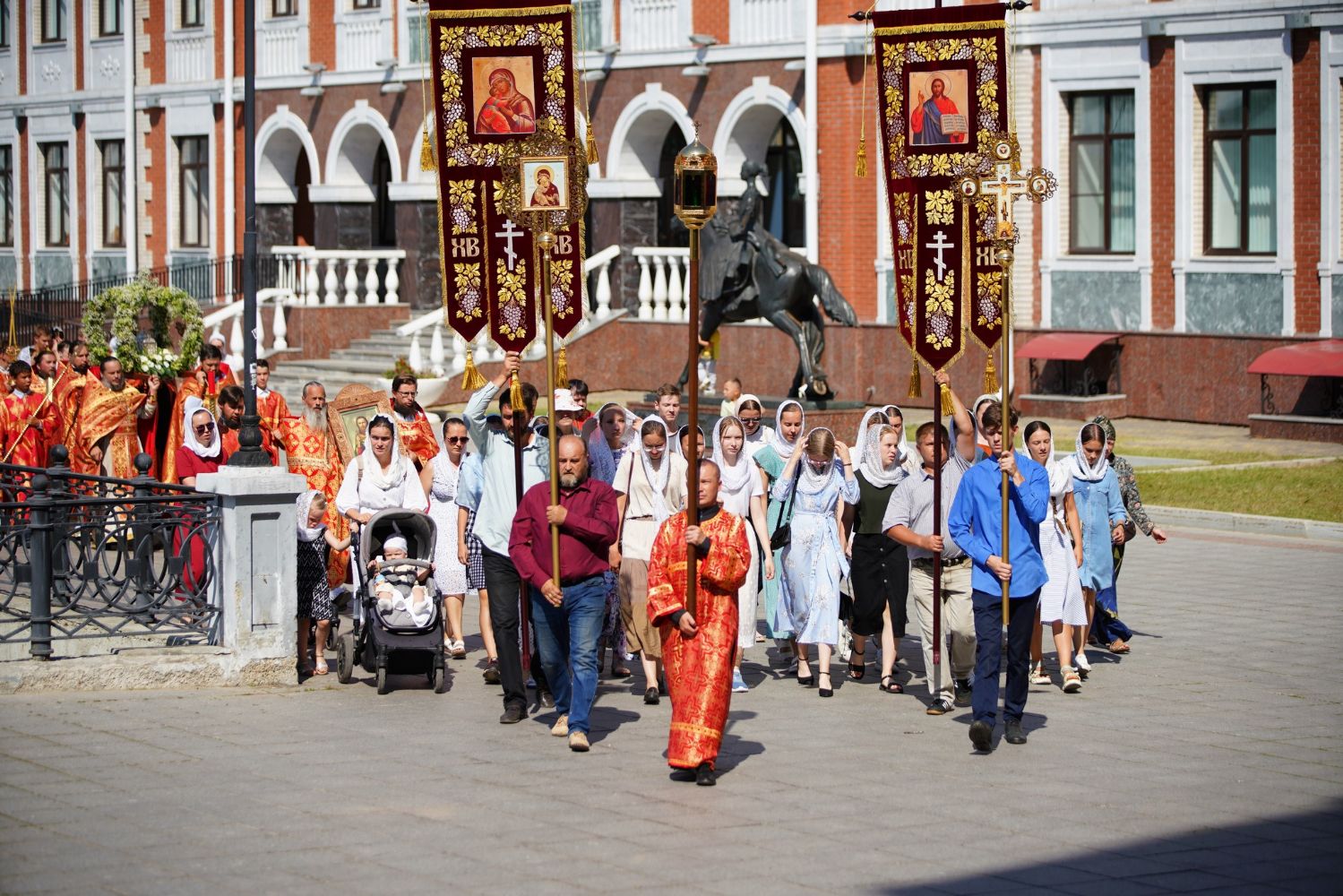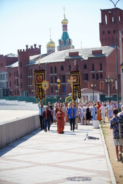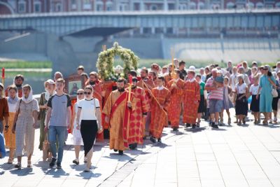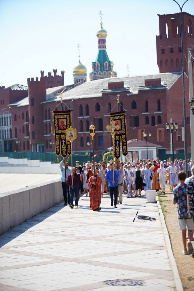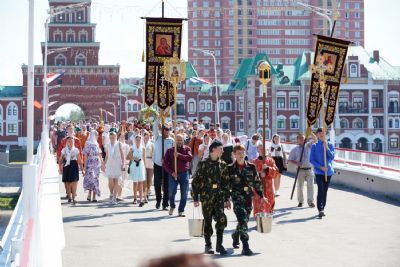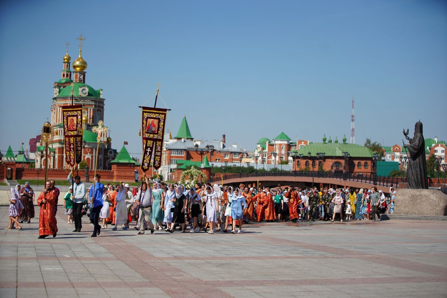 После Божественной литургии по набережной реки Малая Кокшага прошел молодежный крестный ход. Возглавил его митрополит Иоанн с сослужащим духовенством. В связи со сложной эпидемиологической обстановкой в 2020 и 2021 годах крестный ход не проводился. Но в этом году традиция была возобновлена.