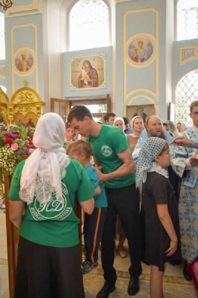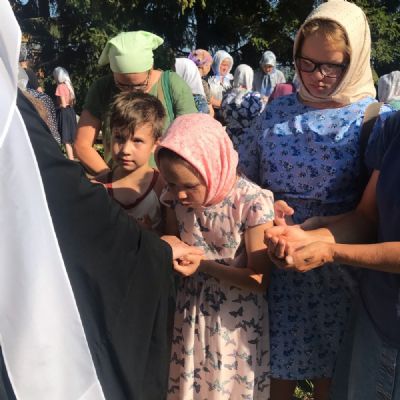 После Литургии прошел крестный ход к источнику Почаевской иконы Богородицы с водосвятным молебном и кроплением водой.