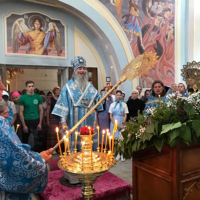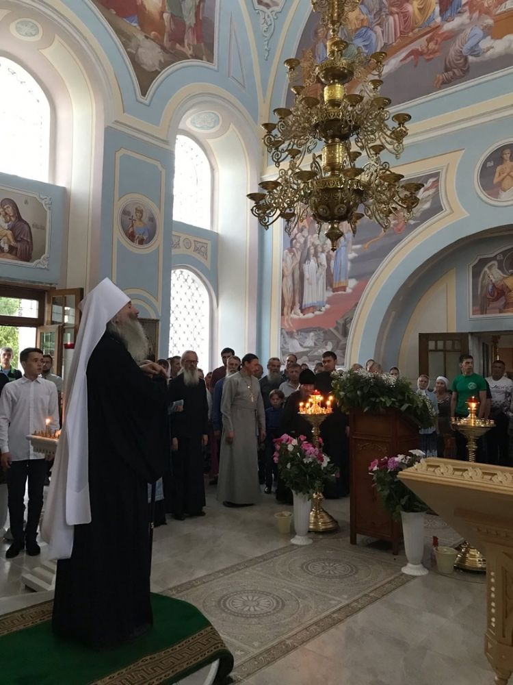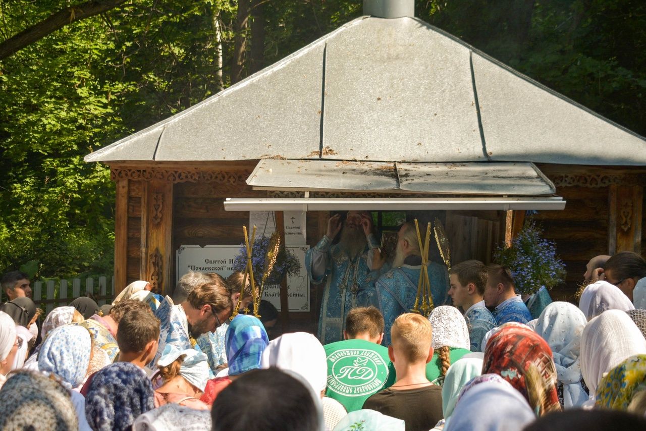 Накануне архипастырь в сослужении духовенства епархии возглавил всенощное бдение. После вечернего богослужения и трапезы митрополит Иоанн возглавил чтение молебна с акафистом Почаевской иконе Богородицы на святом источнике.