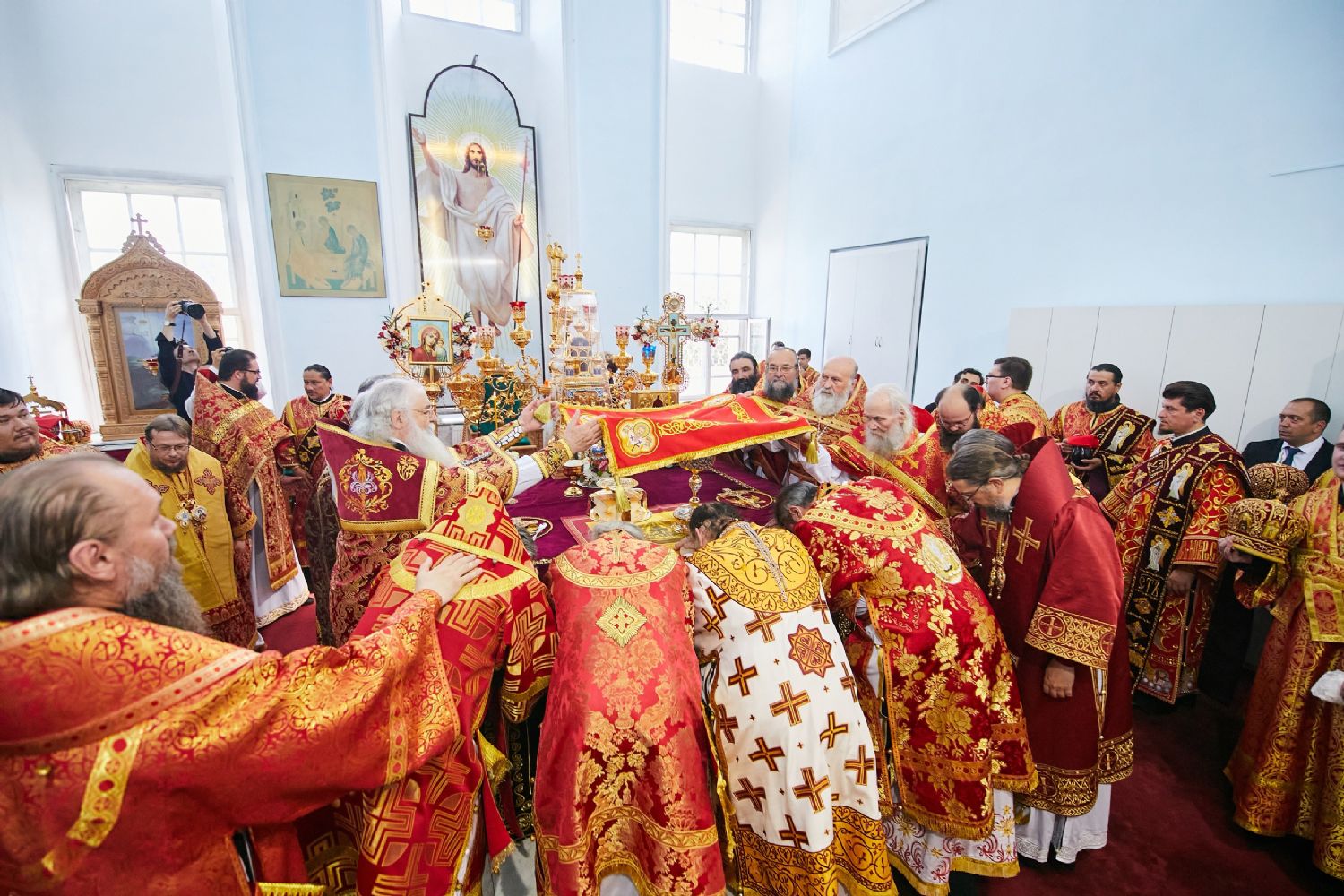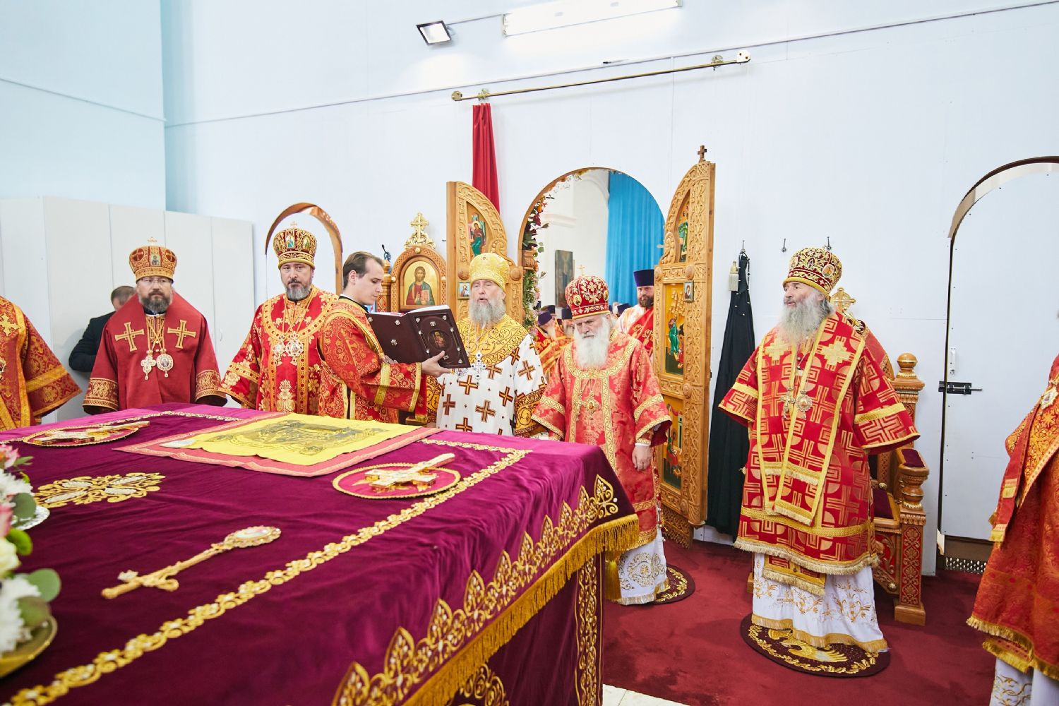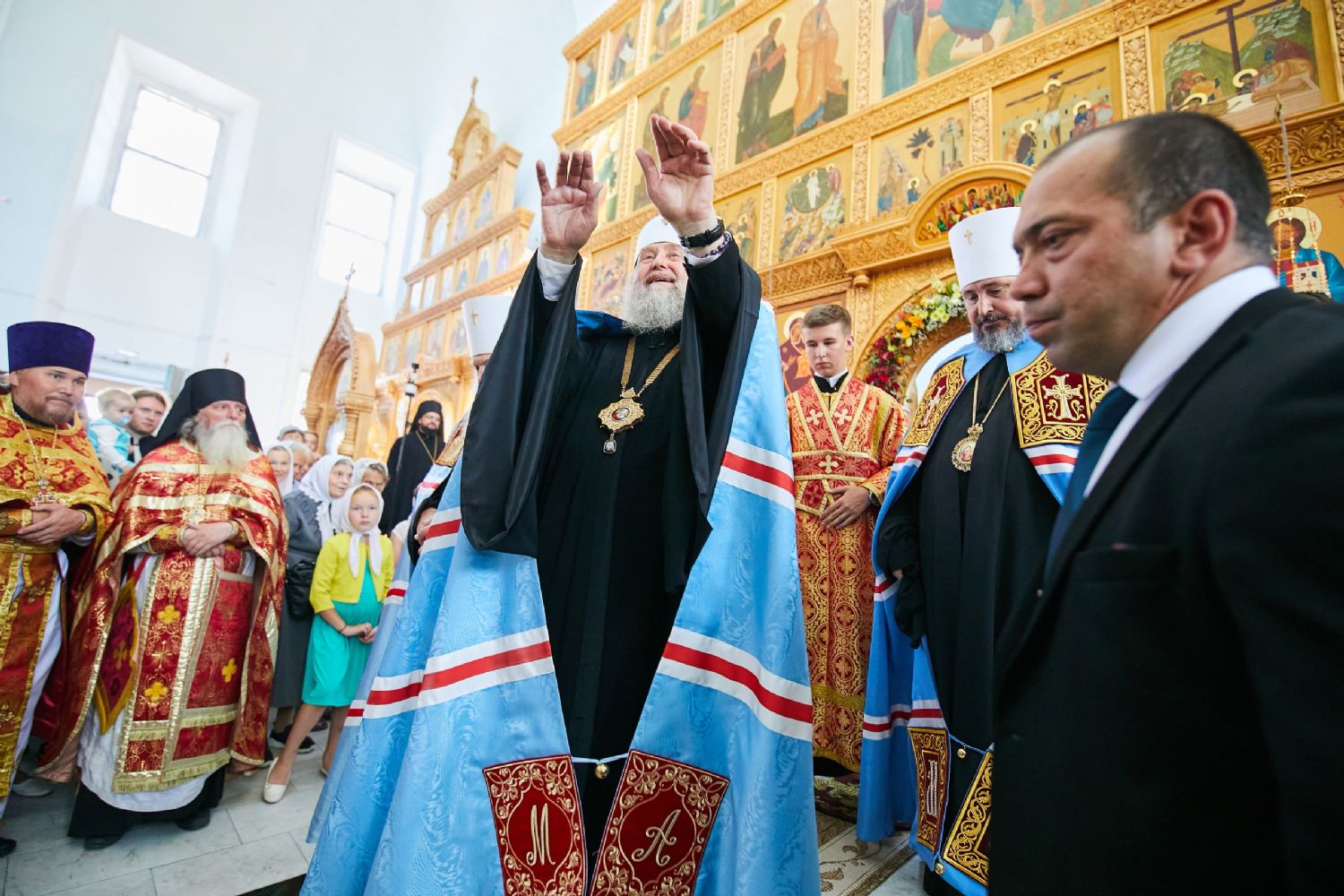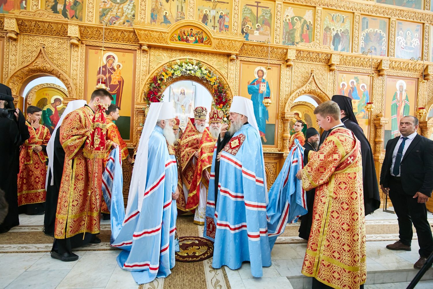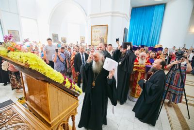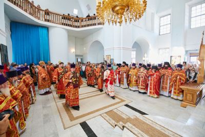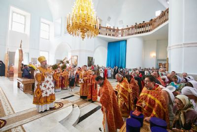 Божественную литургию возглавил, по благословению Святейшего Патриарха Московского и всея Руси Кирилла, постоянные члены Священного Синода Русской Православной Церкви митрополит Астанайский и Казахстанский Александр, глава митрополичьего округа Русской Православной Церкви в Республике Казахстан.