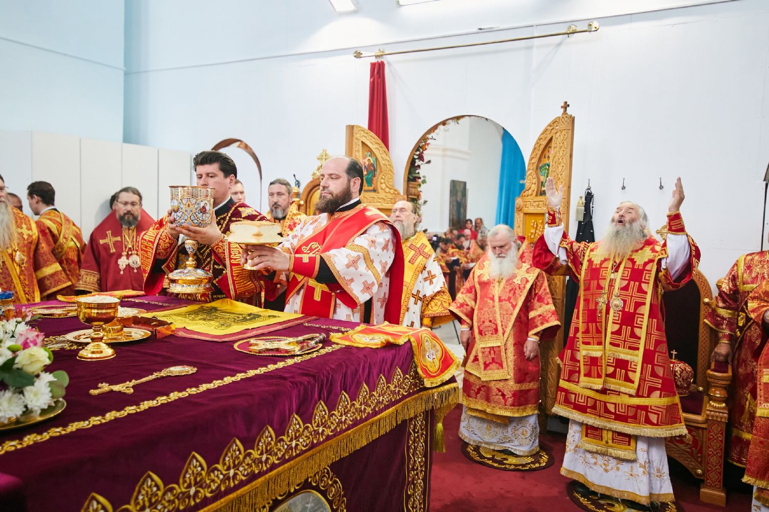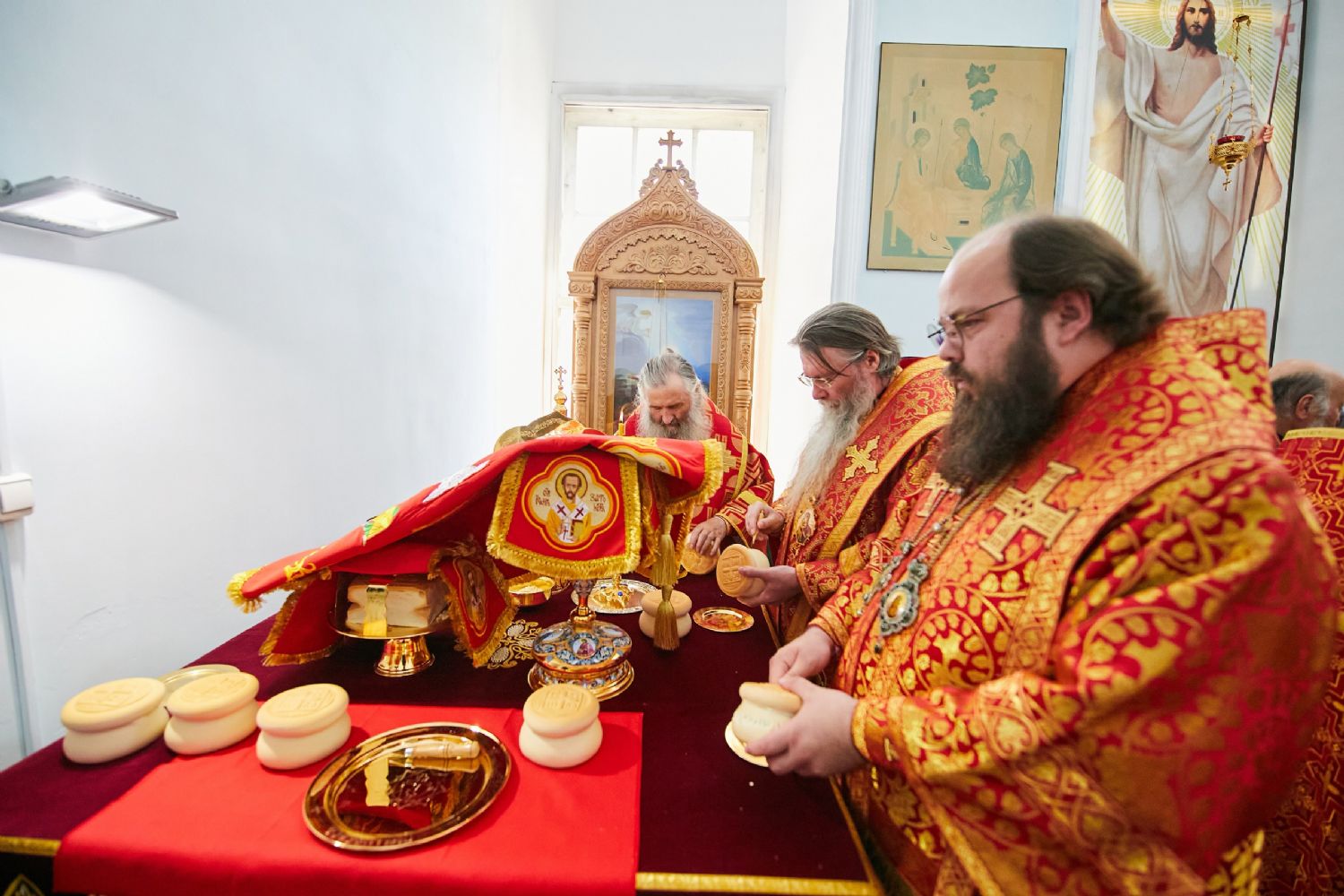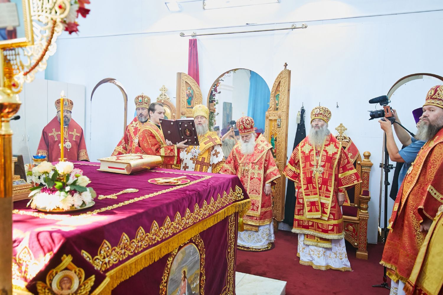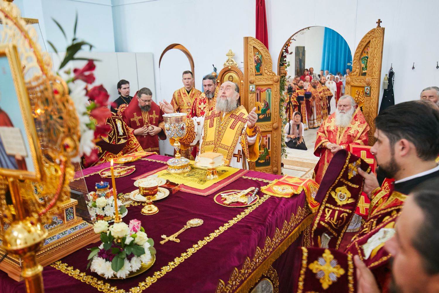 Божественную литургию возглавил, по благословению Святейшего Патриарха Московского и всея Руси Кирилла, постоянные члены Священного Синода Русской Православной Церкви митрополит Астанайский и Казахстанский Александр, глава митрополичьего округа Русской Православной Церкви в Республике Казахстан.