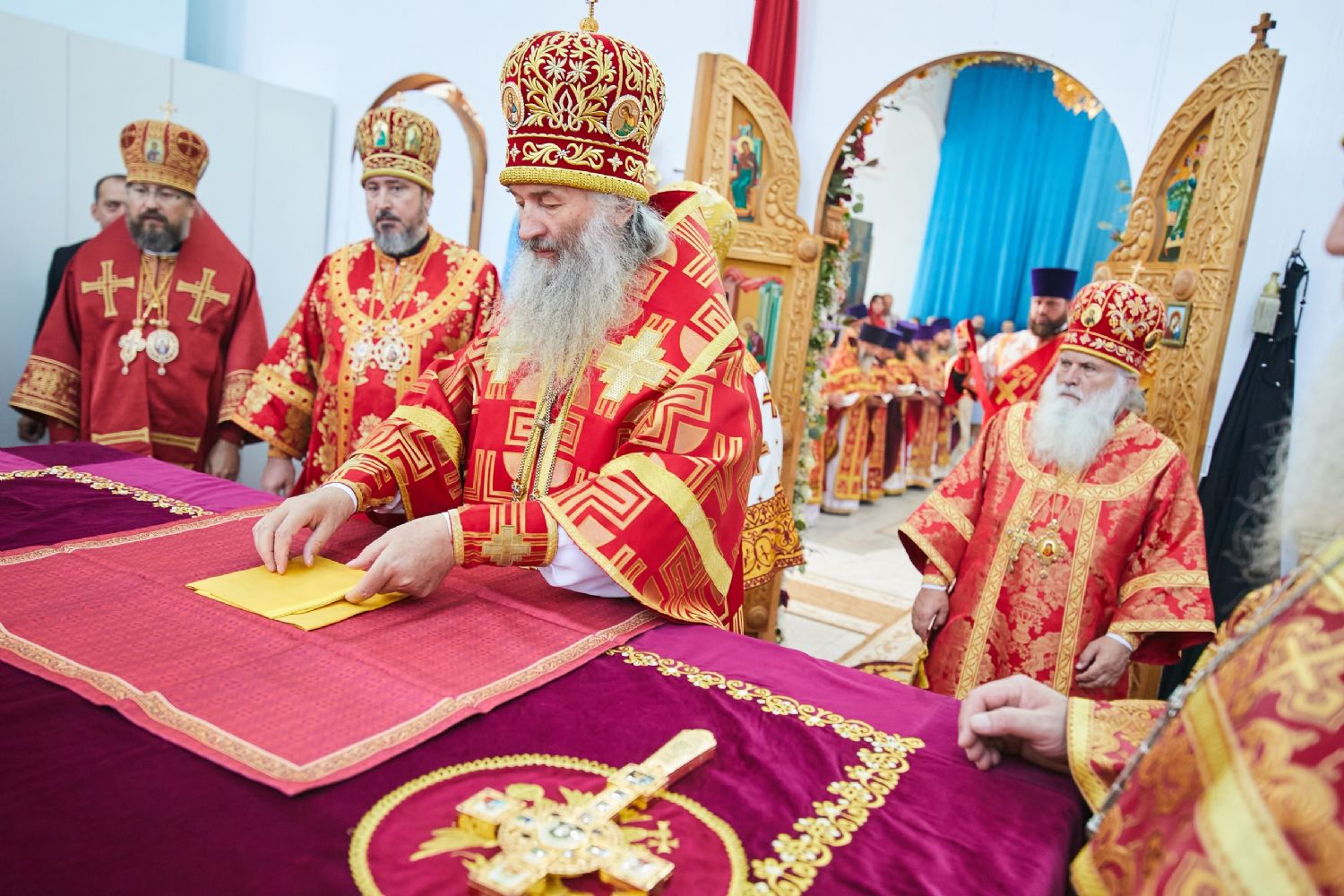 На сугубой ектении были вознесены прошения о единстве Святого Православия и сохранении Церкви Христовой от разделений и расколов. Владыка митрополит прочитал молитву о восстановлении мира, совершаемую во всех храмах Русской Православной Церкви по благословению Святейшего Патриарха Московского и всея Руси Кирилла.