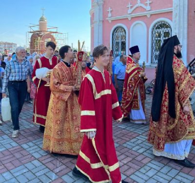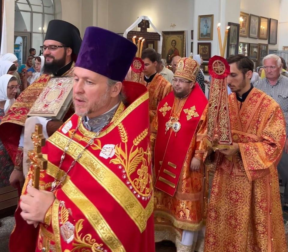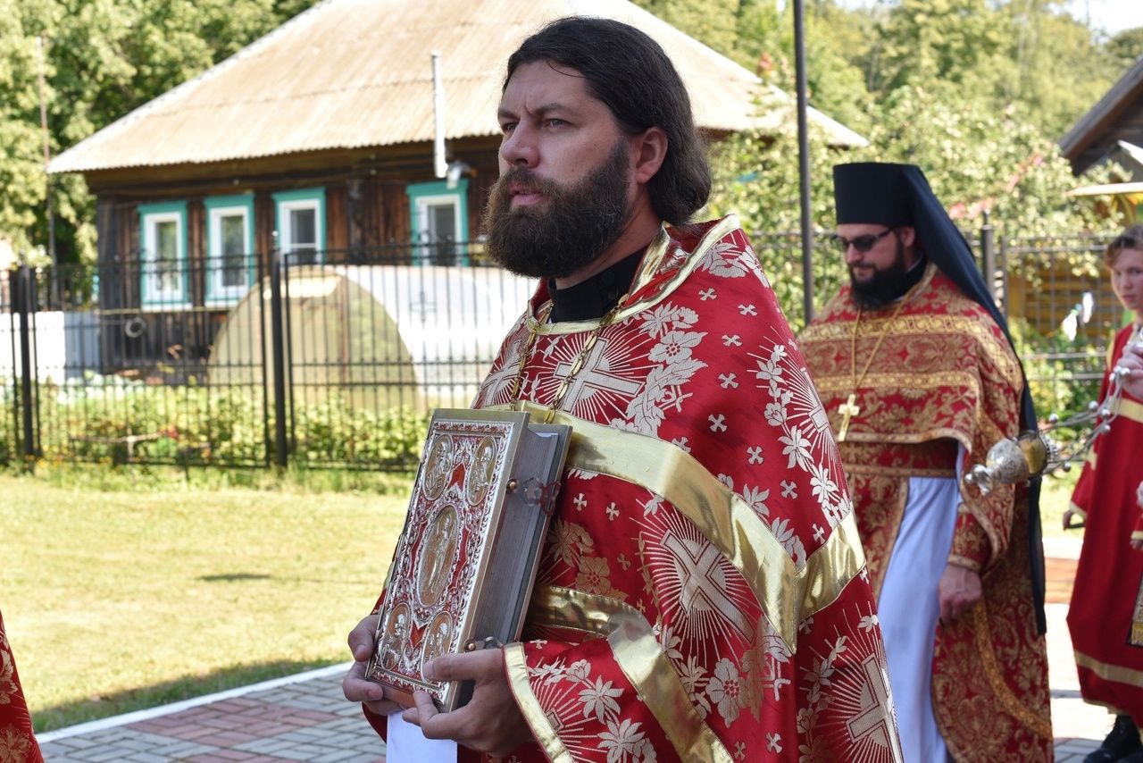 По окончании Литургии состоялся крестный ход вокруг храма. Во время остановки у алтарной стены епископ Паисий прочитал евангельское зачало и окропил верующих святой водой. После молитвы священномученику Сергию владыка поздравил участников богослужения с праздником. В проповеди архипастырь рассказал о непростой судьбе отца Сергия Стрельникова и его мученической кончине.