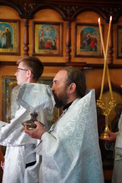 Его Высокопреосвященству сослужили секретарь Йошкар-Олинского епархиального управления иеромонах Серафим (Пасанаев), клирики храма иерей Димитрий Иванов и протодиакон Михаил Козловский. Песнопения исполнял хор храма.