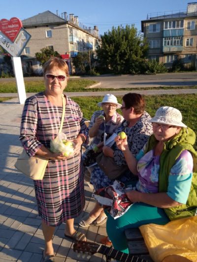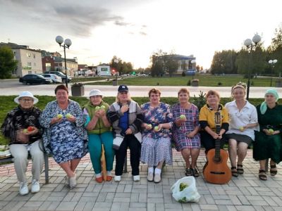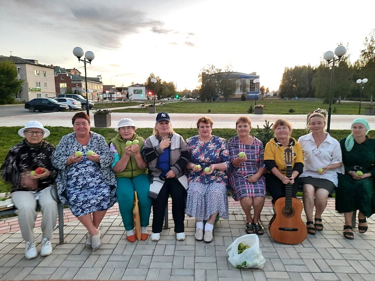 На этот раз получилась «яблочная вечеринка». Любители песен были не только из Советского, но и Ургакша, Чкарино. Пришли и приехали с яблоками, щедро одаривая ими прохожих и поздравляя с праздником.