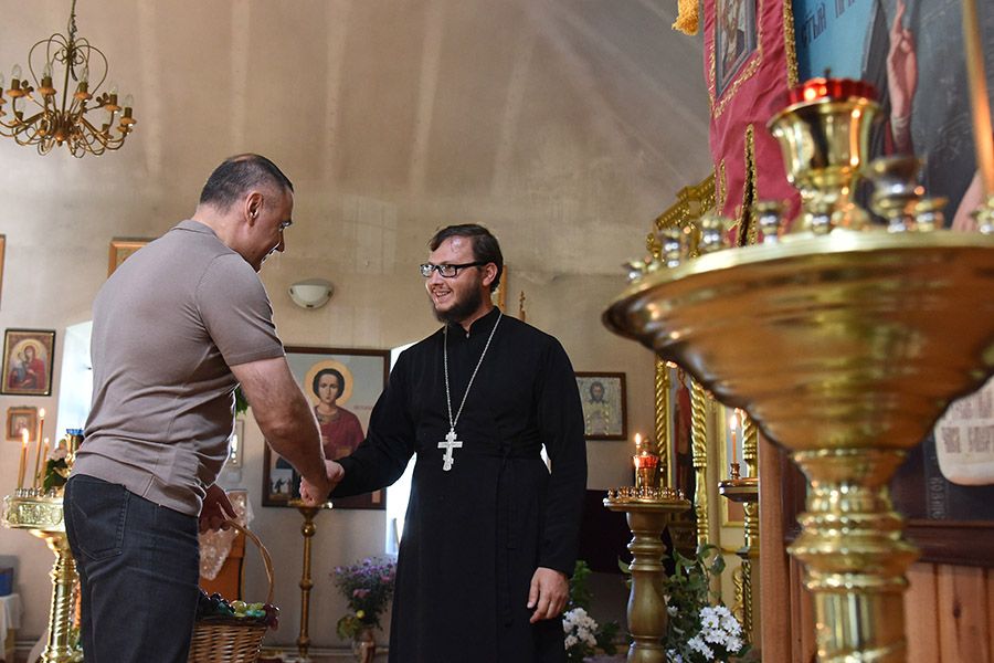 В разговоре с настоятелем храма иереем Романом Соловьевым Юрий Викторович поделился, что Преображение Господне для него – особенный праздник. «В 2012 году в этот день я был на горе Фавор в Израиле в ночь с 18 на 19 августа как раз там, где, по преданию, по Евангелию, Иисус предстал перед апостолами, показав, что Он не просто человек, но еще и Сын Божий. Я этот праздник очень чту, поэтому я не мог не заехать сегодня к вам», – сказал Юрий Зайцев.