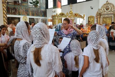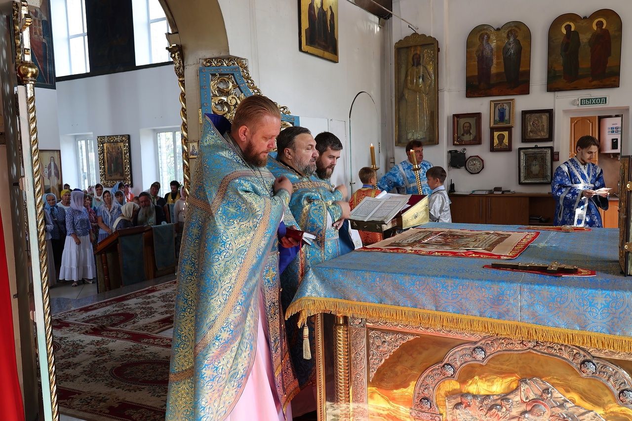28 августа, в праздник Успения Пресвятой Богородицы, епископ Волжский и Сернурский Феофан молился за Божественной литургией в Никольском кафедральном соборе г. Волжска.