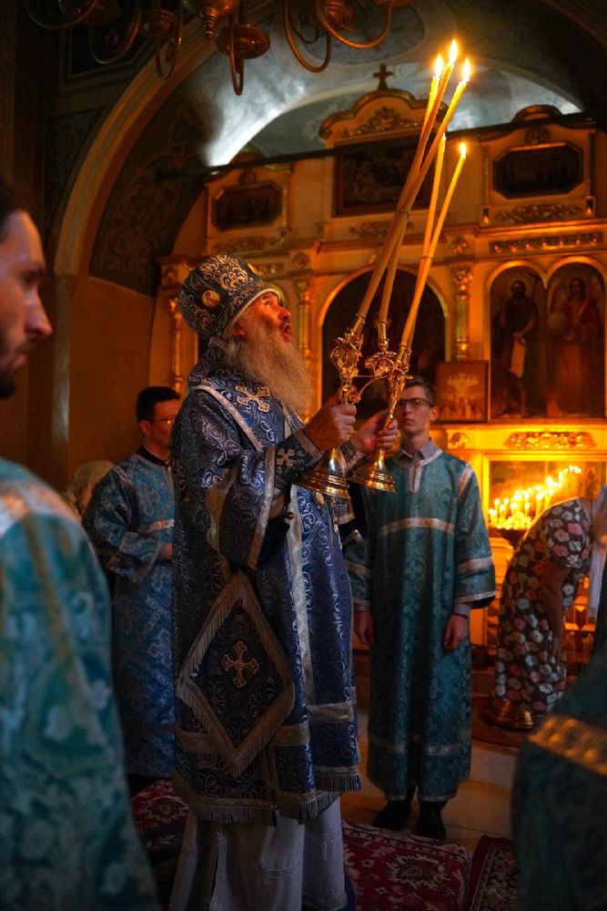 Вечером 28 августа митрополит Йошкар-Олинский и Марийский Иоанн возглавил всенощное бдение с чином погребения Божией Матери в храме Рождества Пресвятой Богородицы с. Семеновка.