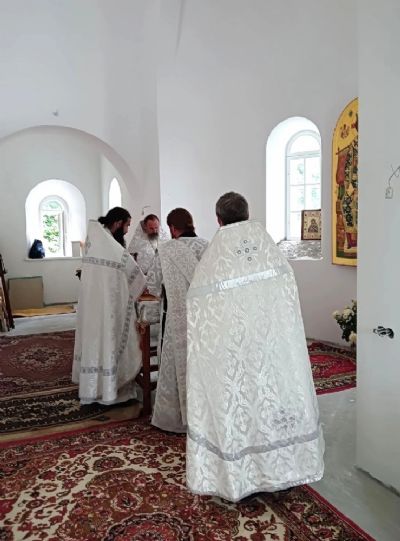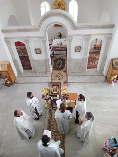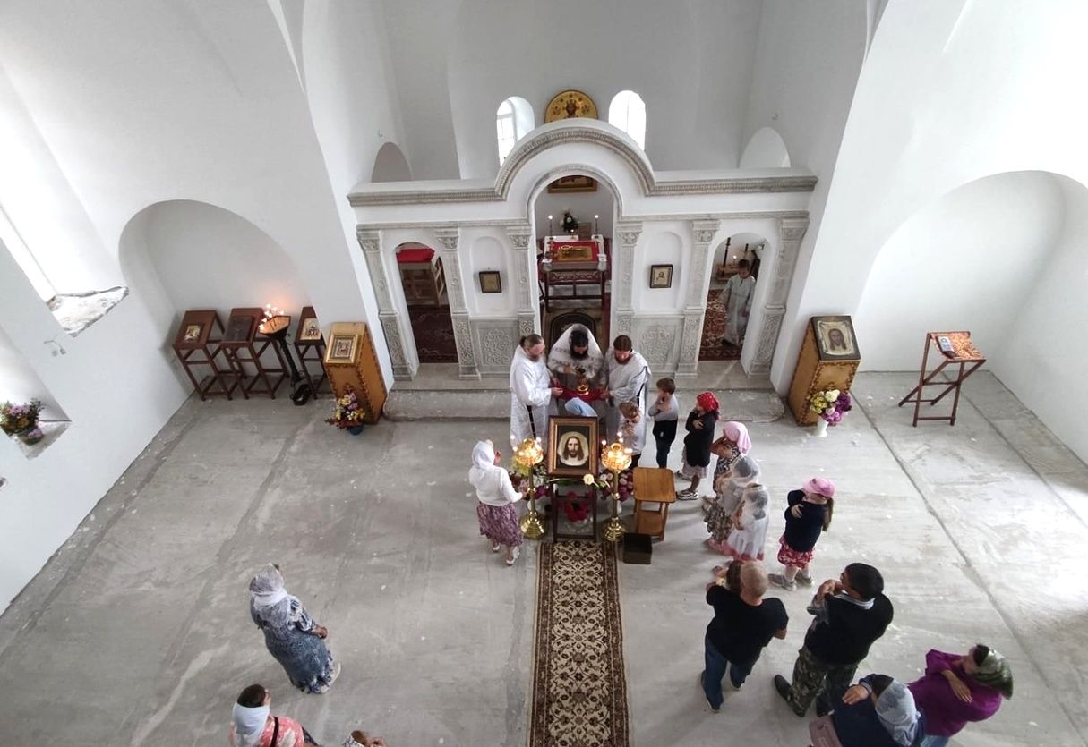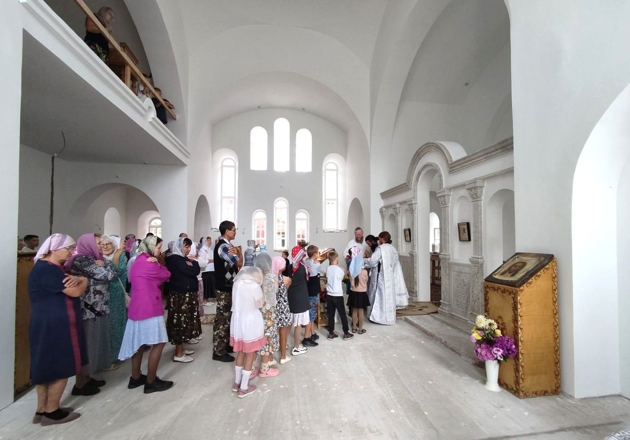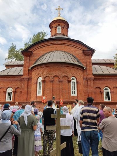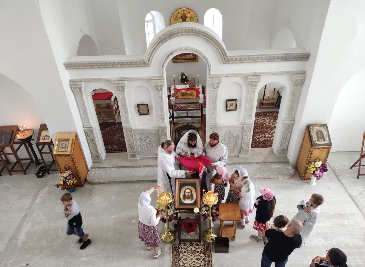 В праздничный день в храме, строительство которого постепенно подходит к завершению, была совершена соборная Божественная литургия, возглавил которую настоятель храма иерей Никита Смирнов. Ему сослужили благочинный Медведевского церковного округа иерей Александр Козлов, настоятель храма Казанской иконы Божией Матери с. Нурма иерей Александр Коваль, настоятель строящегося в с. Сидорово храма в честь иконы Богородицы «Спорительница хлебов» иерей Димитрий Дьяков, настоятель Петропавловского храма с. Верх-Ушнур иерей Алексий Тарасов и клирик Благовещенского кафедрального собора г. Йошкар-Олы диакон Андрей Дружинин.