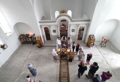 После Литургии прошел крестный ход вокруг храма с чтением Евангелия и кроплением святой водой. Затем был отслужен молебен на начало учения отроков. Завершилось торжество совместной праздничной трапезой.
