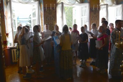 За богослужением молились певчие хора «Благовест», большинство из которых – учащиеся школ и других учебных заведений; воспитанники воскресной школы при хоре; их педагоги и родители.