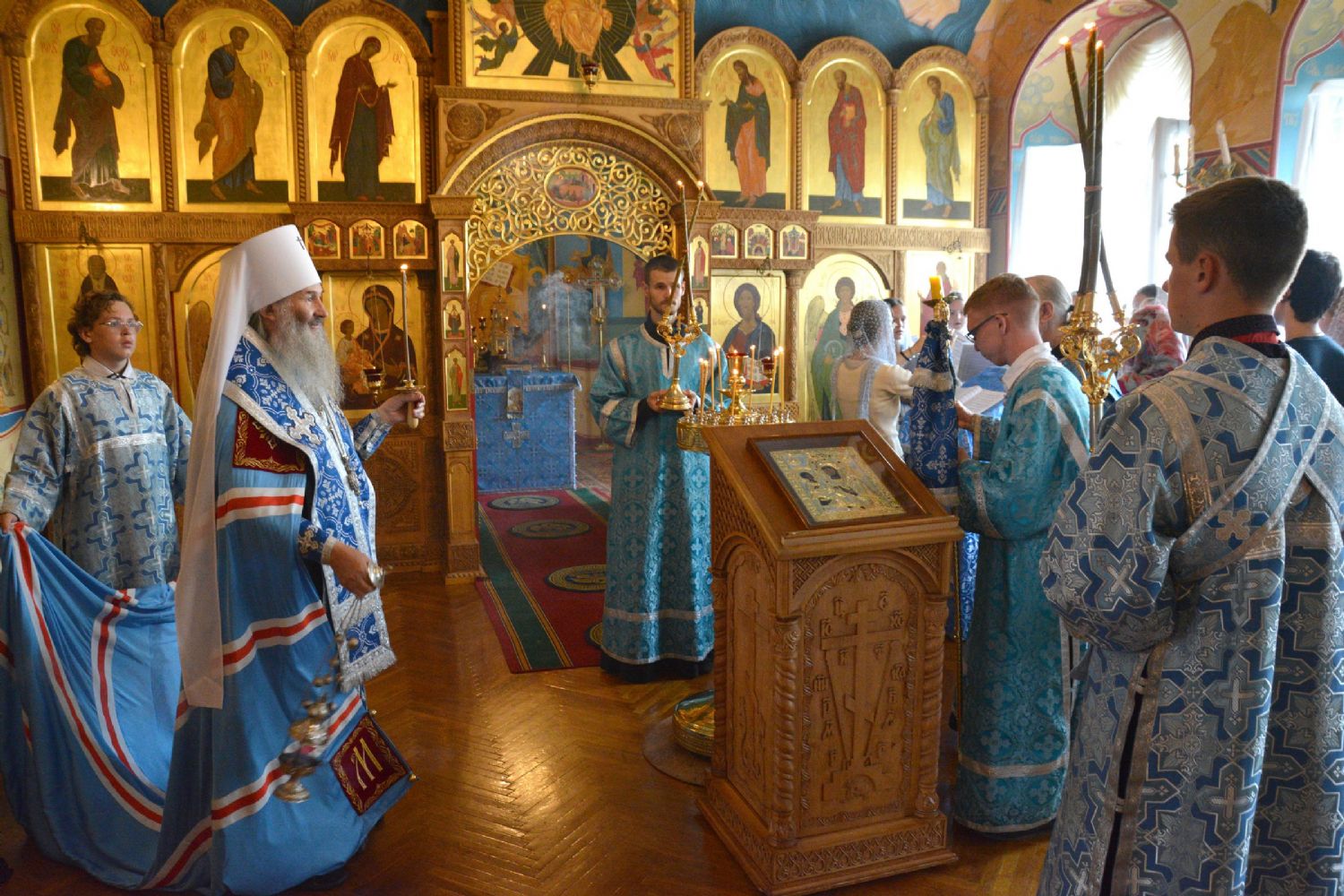 31 августа митрополит Йошкар-Олинский и Марийский Иоанн совершил молебен с акафистом перед образом Пречистой Богородицы «Троеручица» в домовом храме епархиального управления.