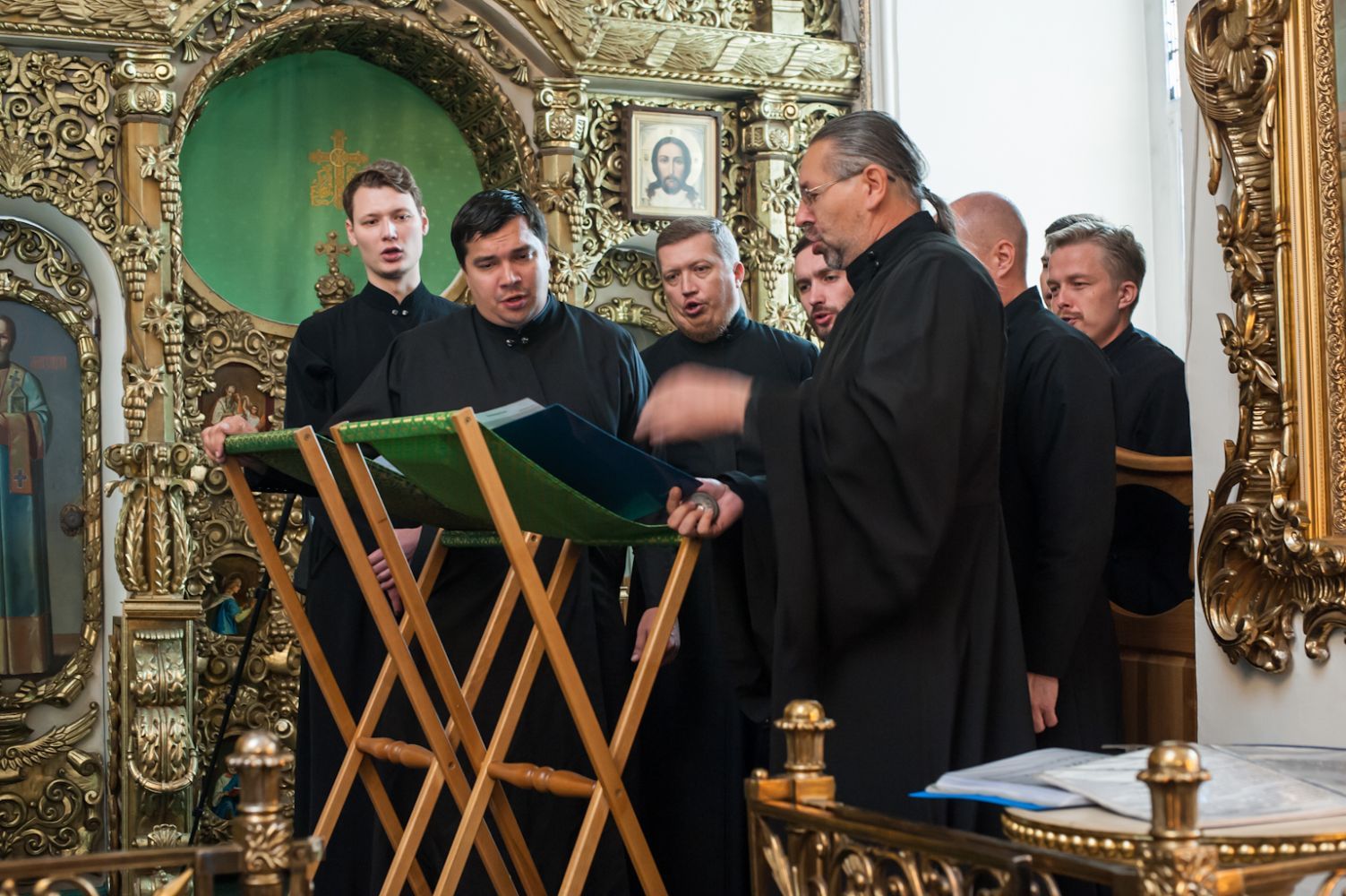 Песнопения исполнялись архиерейским мужским хором (регент — Денис Рогов), монастырским мужским хором (регент — диакон Сергий Уренцев), московским мужским церковным хором «Сихарули» (регент — Шота Мушкудиани).
