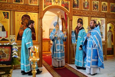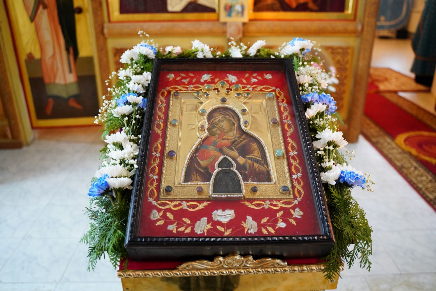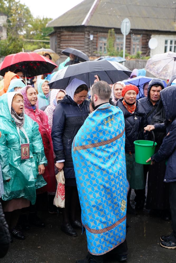 Владыке сослужили секретарь Йошкар-Олинского епархиального управления иеромонах Серафим (Пасанаев), клирик Серафимовского храма г. Йошкар-Олы иерей Николай Бабич и протодиакон Михаил Козловский. Песнопения исполнял детско-юношеский хор «Благовест» под управлением регента Надежды Поздеевой. Помолиться перед чудотворным образом собралось множество верующих из Ежово, Йошкар-Олы и окрестных селений.