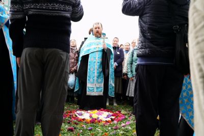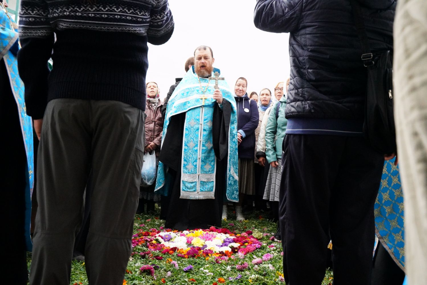 По прибытии священники отслужили молебен Пресвятой Богородице, окропив всех собравшихся святой водой.