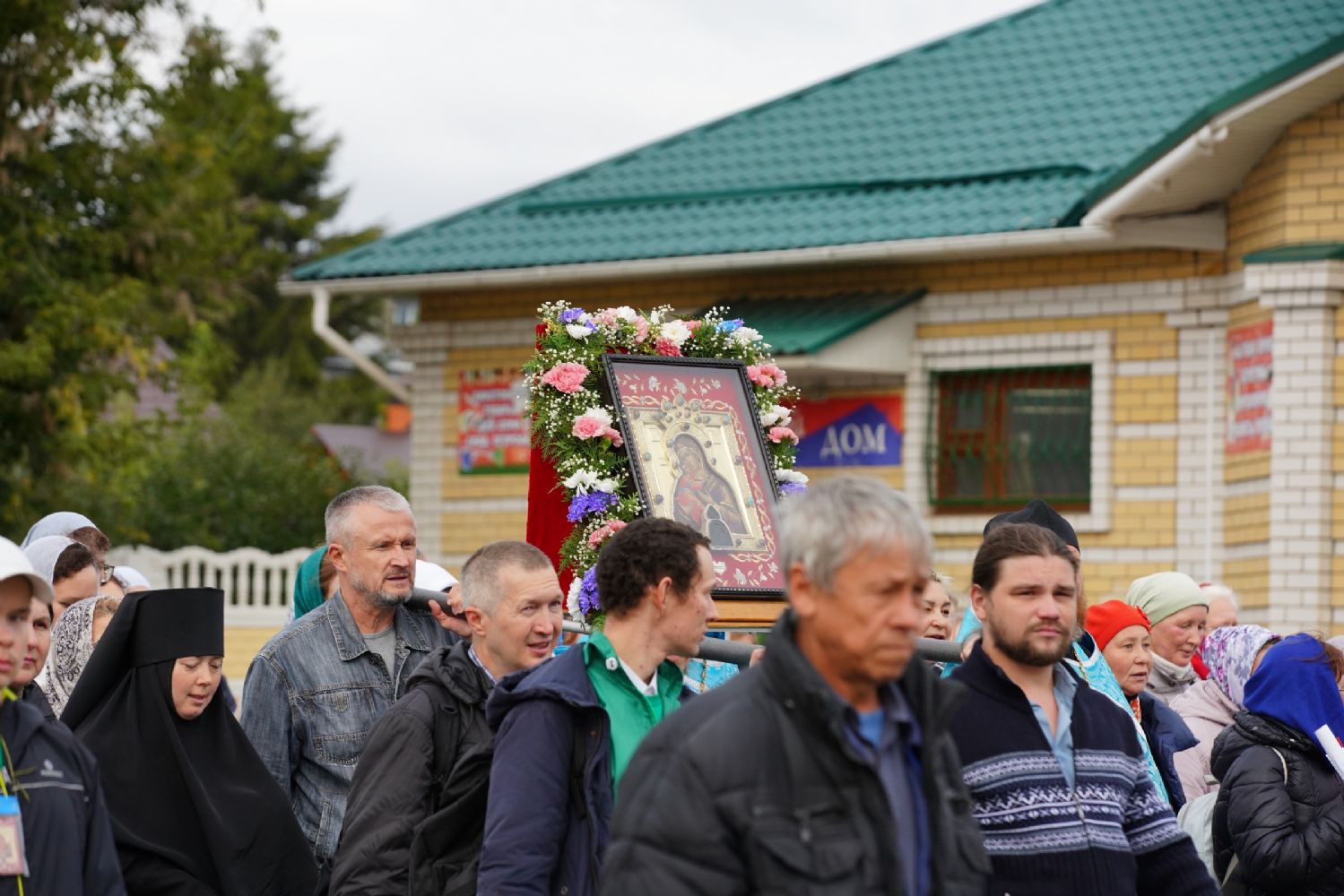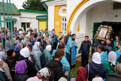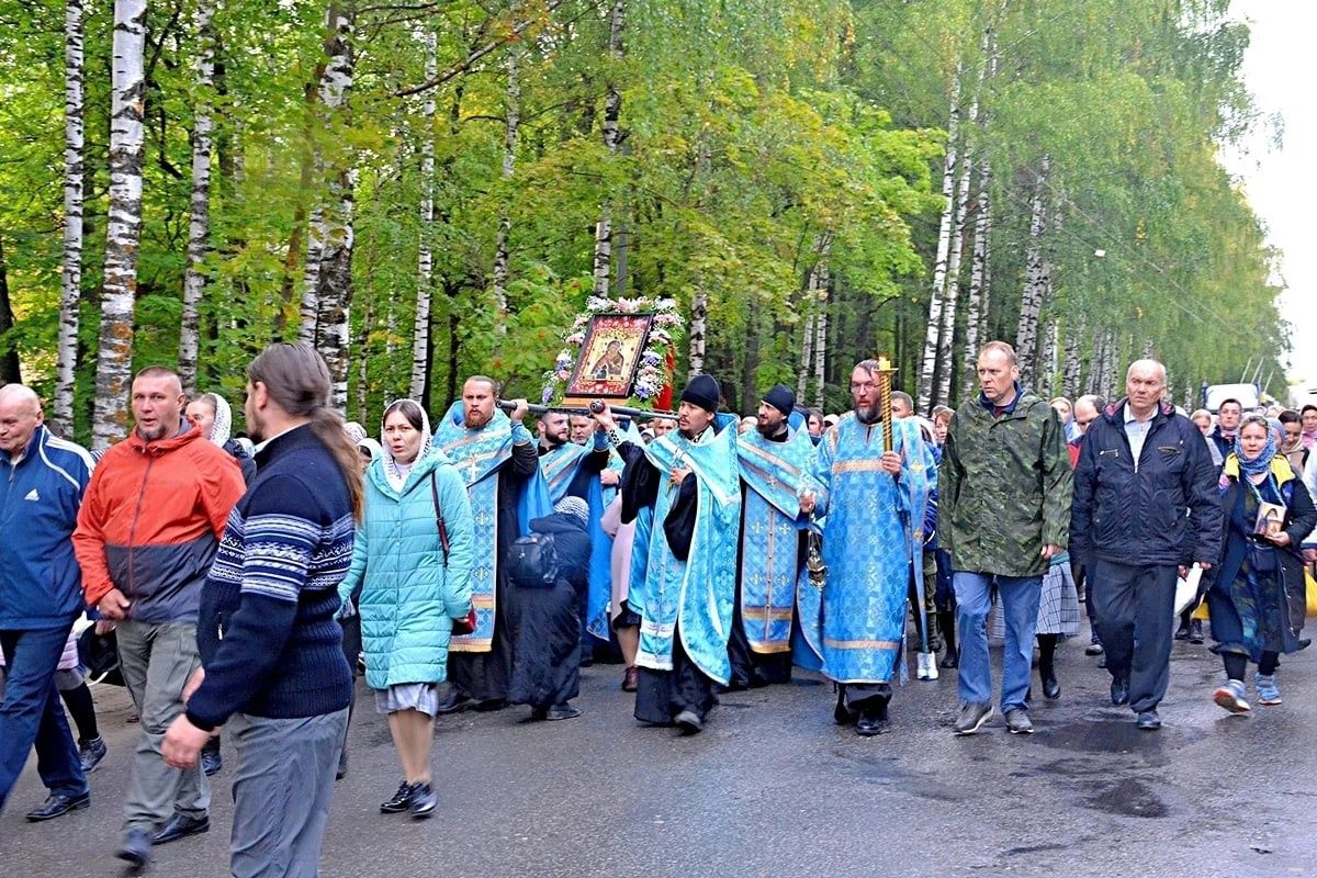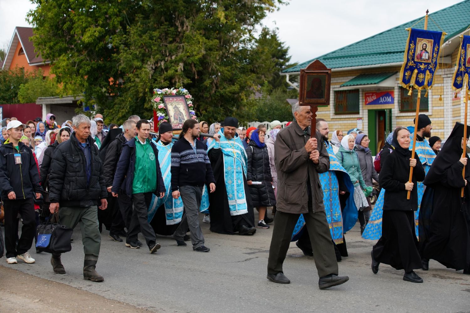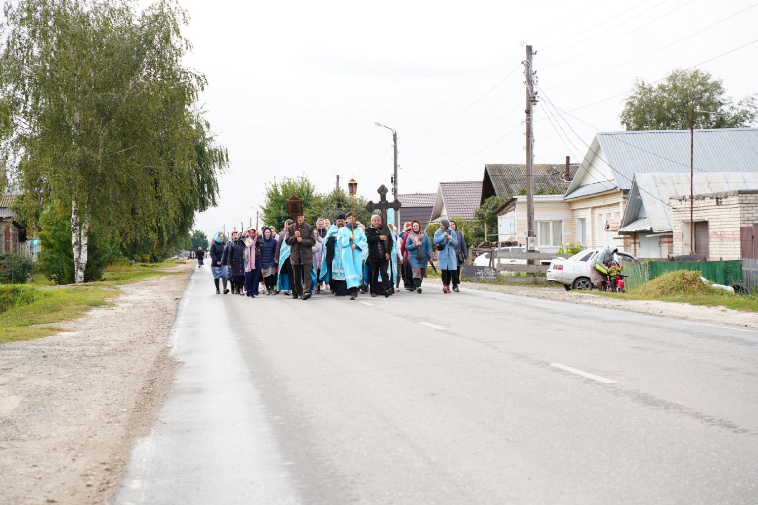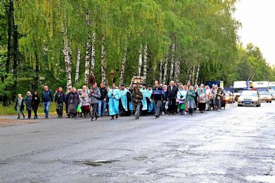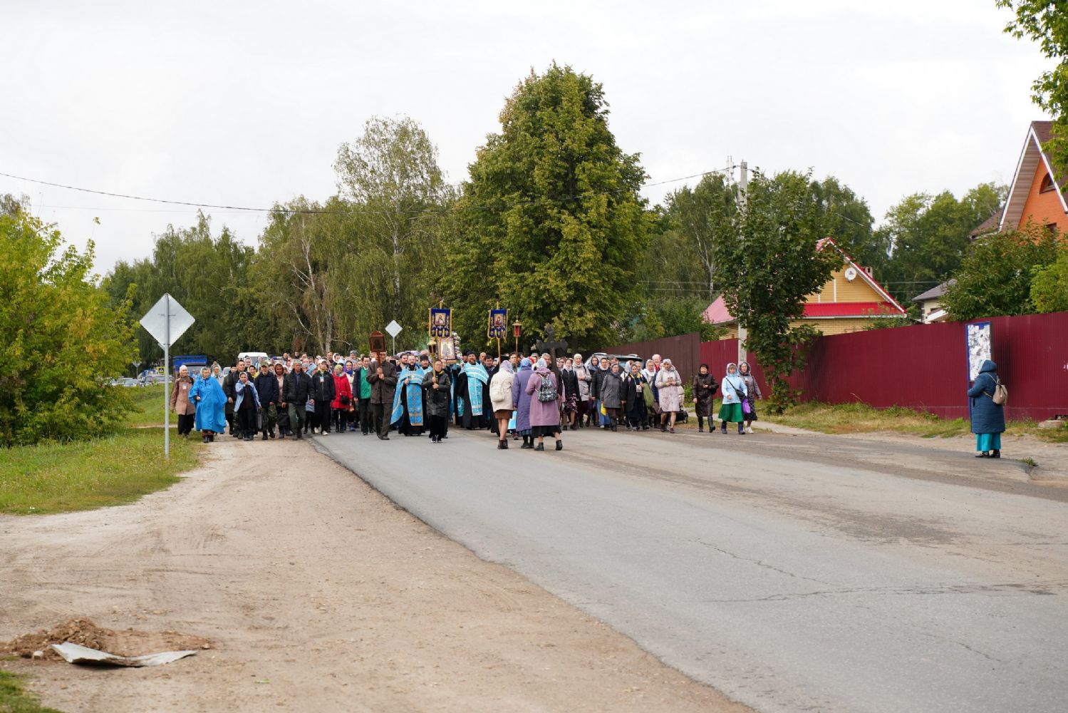 8 сентября после обеда крестоходцы с Мироносицкой иконой Божией Матери пришли из Ежово в Семеновку, где их радостно встретили клирики и прихожане храма Рождества Пресвятой Богородицы во главе с ключарем храма протоиереем Михаилом Ильиным.