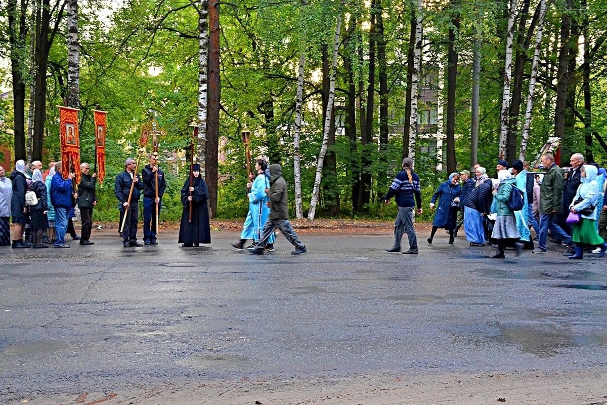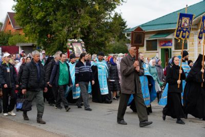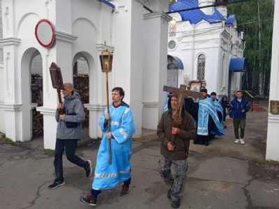В храме было совершено всенощное бдение, после чего крестный ход двинулся дальше – к храму Серафима Саровского в микрорайоне Дубки г. Йошкар-Олы. По пути крестоходцы зашли в храм Всех святых на Туруновском кладбище.