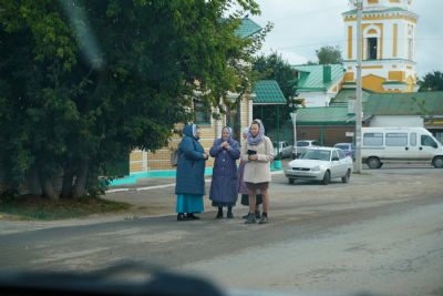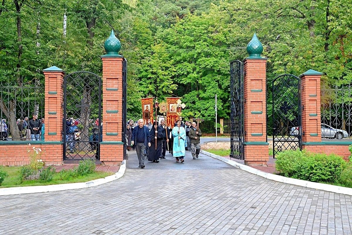 На подходе к Дубкам навстречу крестоходцам вышли священники и прихожане Серафимовского храма. Крестные ходы объединяются, и верующие с пением архангельского благовестия радостно идут к воротам храма, их приветствует торжественный колокольный звон.