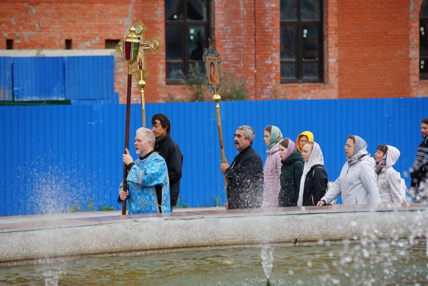 Богослужение совершил клирик храма иерей Константин Домрачев в сослужении диакона Алексия Ершова. После Литургии настоятель храма протоиерей Александр Бачурин отслужил водосвятный молебен и возглавил крестный ход, к которому также присоединился иерей Николай Бабич.