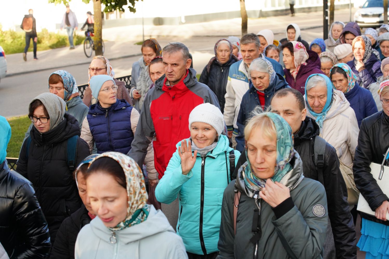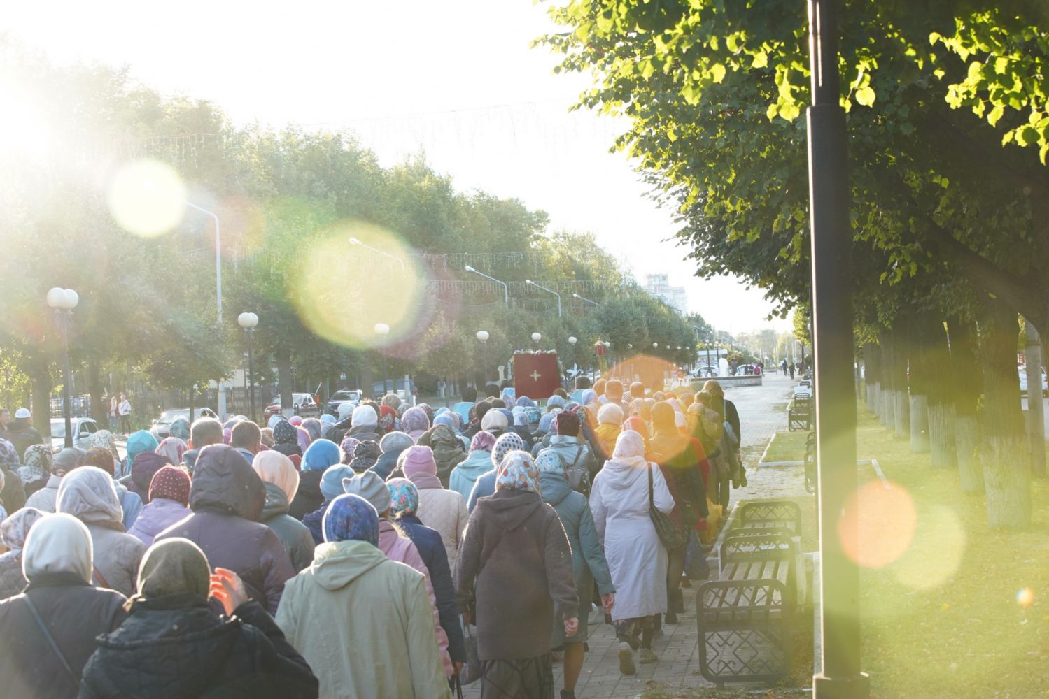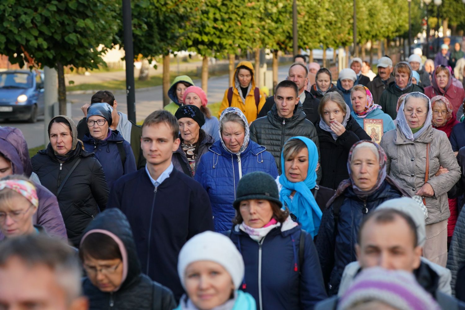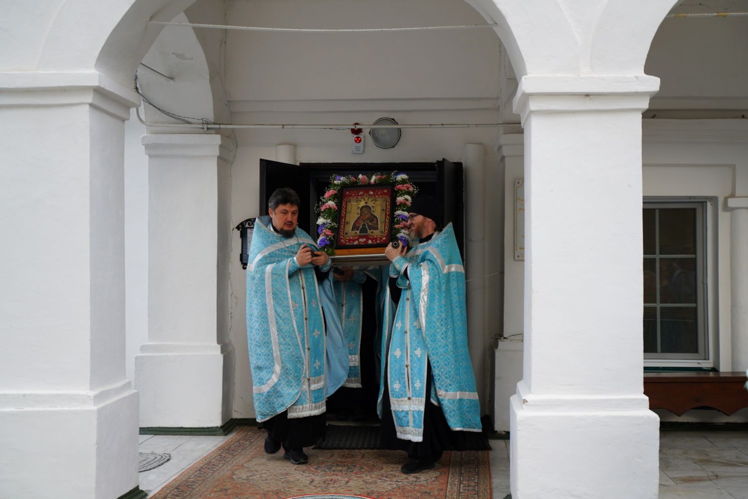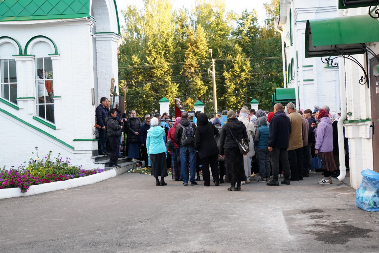 По завершении богослужения прошел крестный ход вокруг храма, а затем крестоходцы с архангельским песнопением "Богородице, Дево, радуйся..." двинулись по улицам города в 9-й микрорайон, к храму Рождества Христова. Навстречу также крестным ходом вышли прихожане и духовенство Христорождественского храма во главе с настоятелем - иереем Александром Лоскутовым. Два людских потока слились и направились к вратам храма, где был совершен молебен Пресвятой Богородице, верующие благоговейно прошли под Мироносицкой иконой, а священники окропили всех святой водой.
