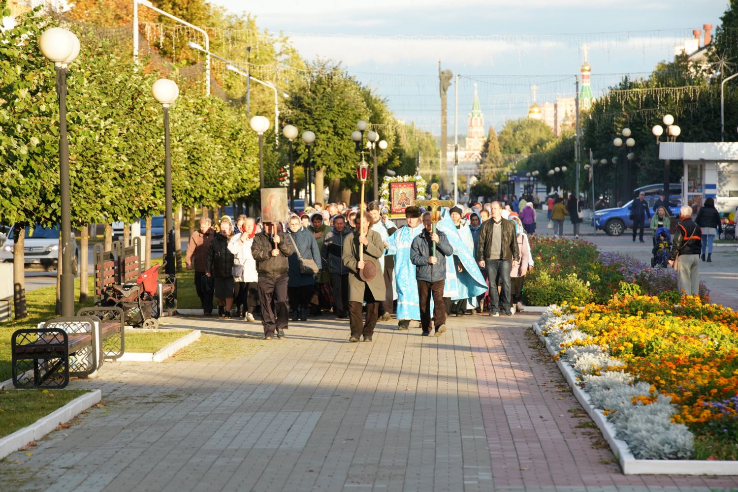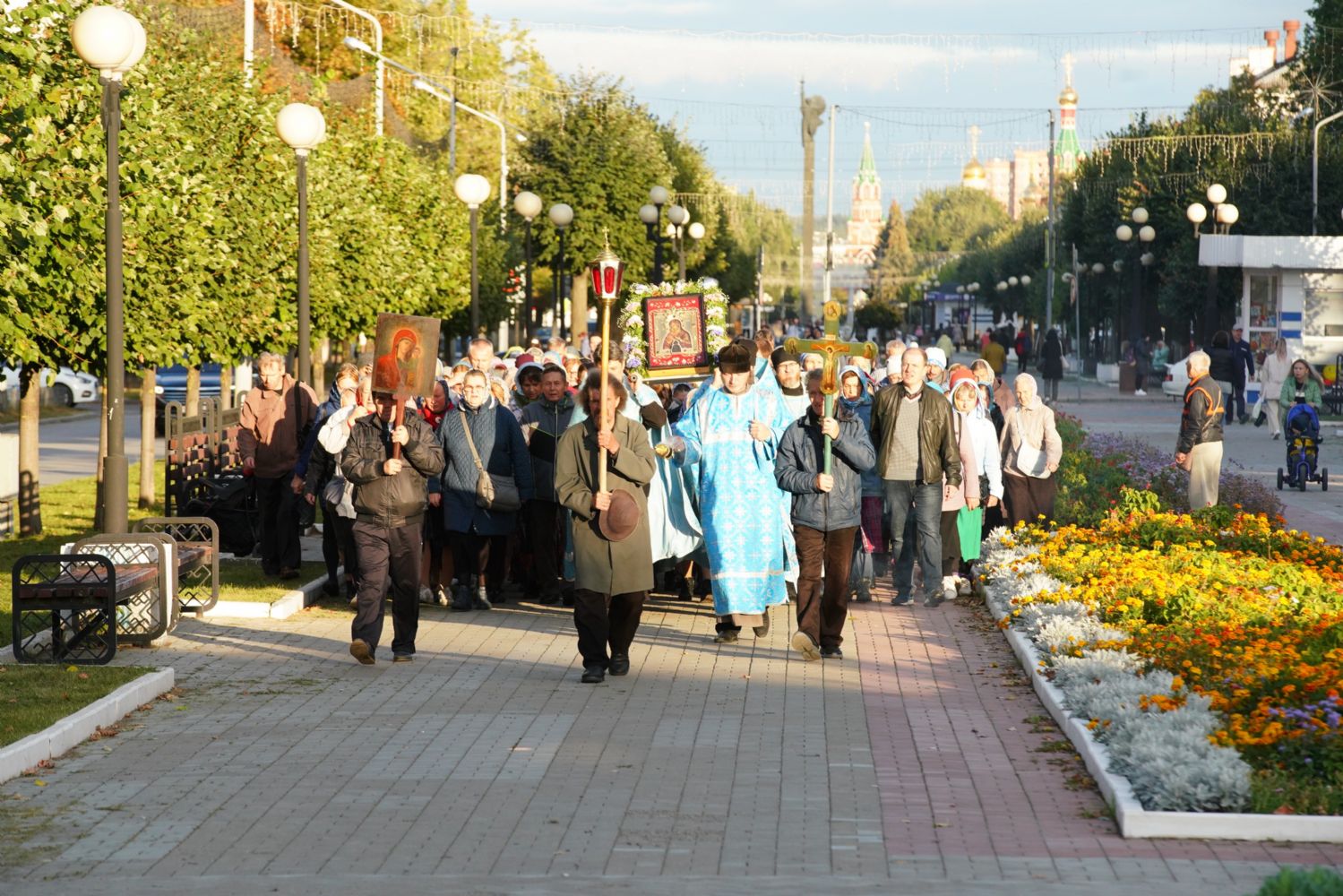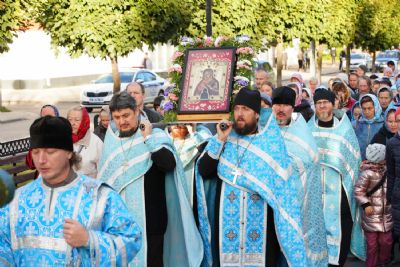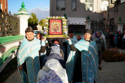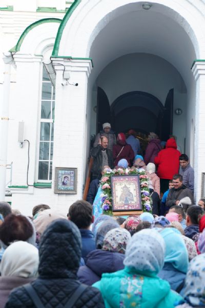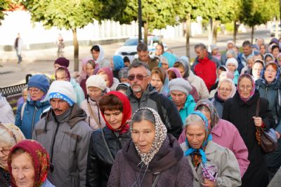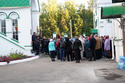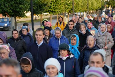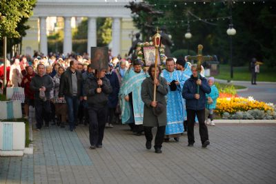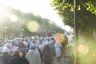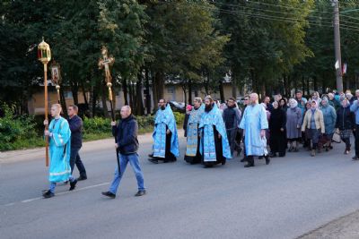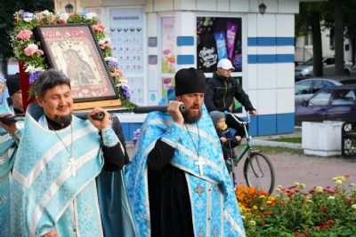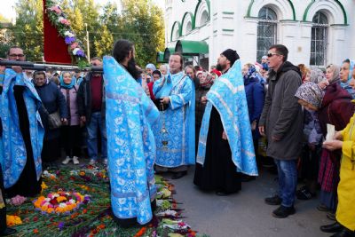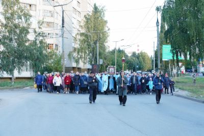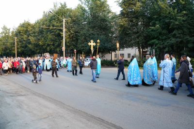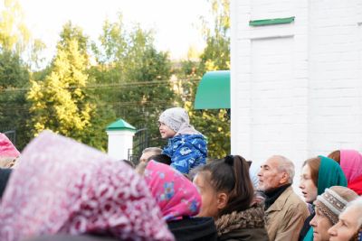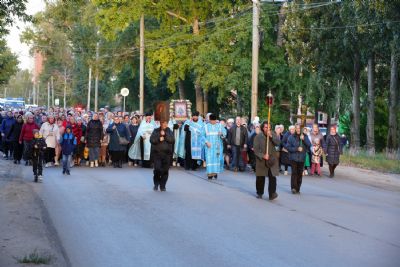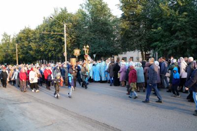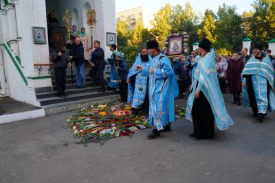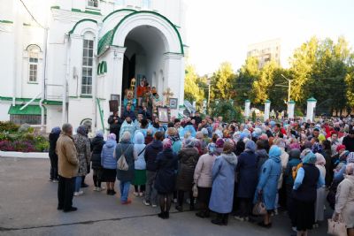 Вечером 9 сентября в Тихвинском храме г. Йошкар-Олы было совершено всенощное бдение. Множество верующих собралось помолиться Божией Матери перед Ее иконой "Мироносицкая", которая в рамках крестного хода была принесена в храм.