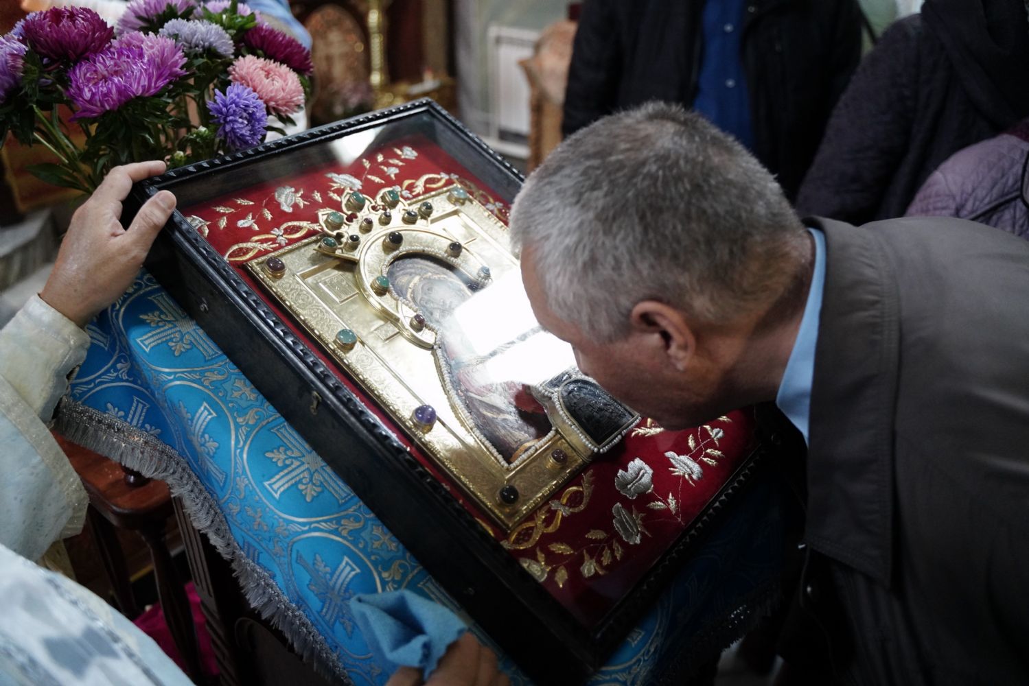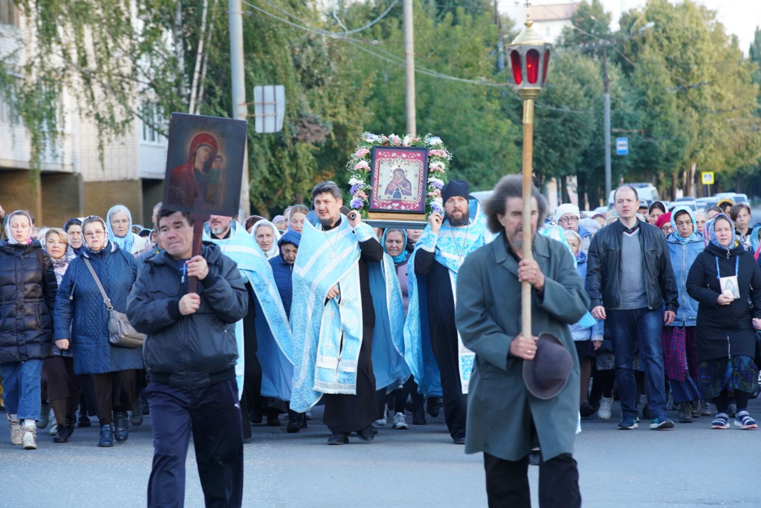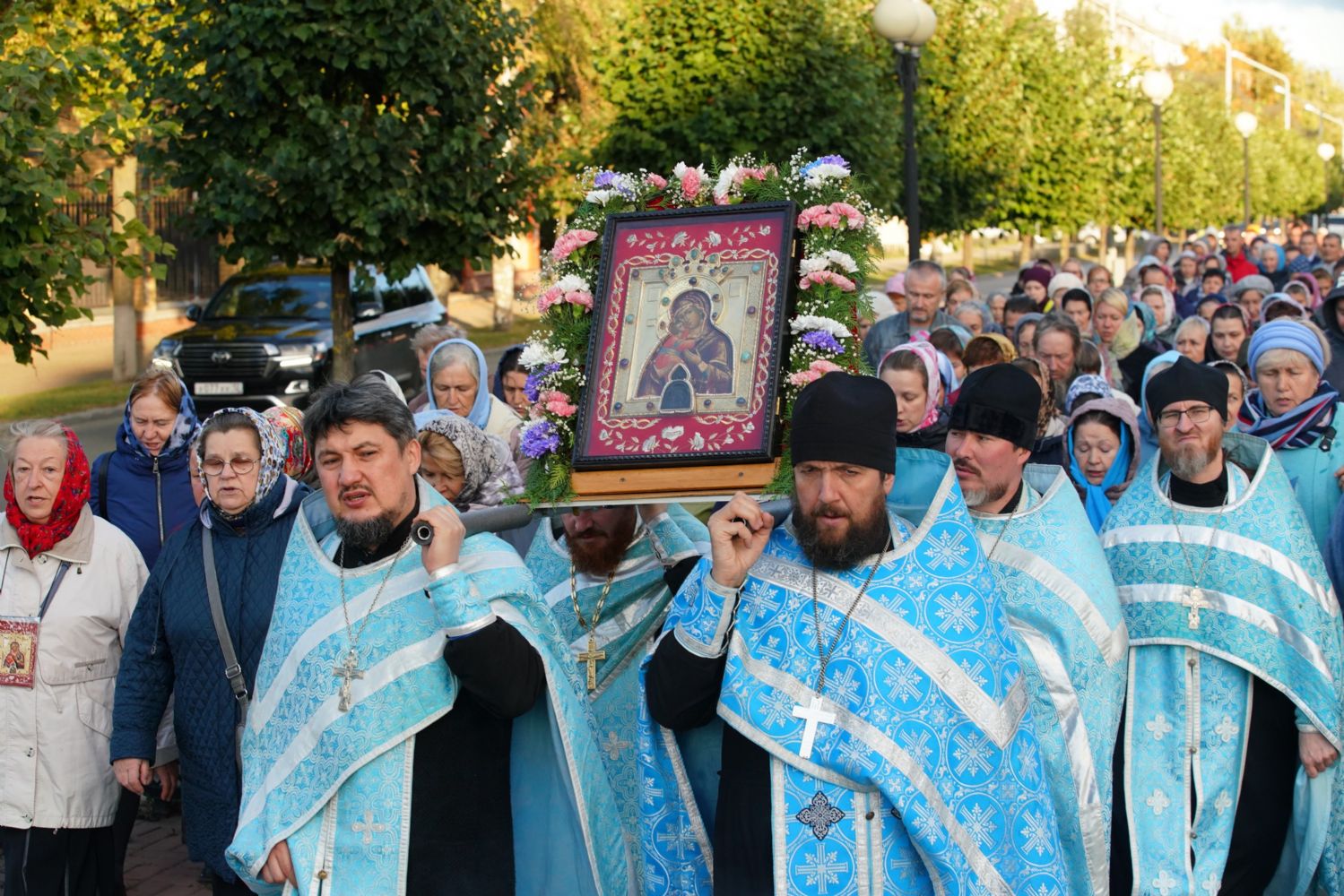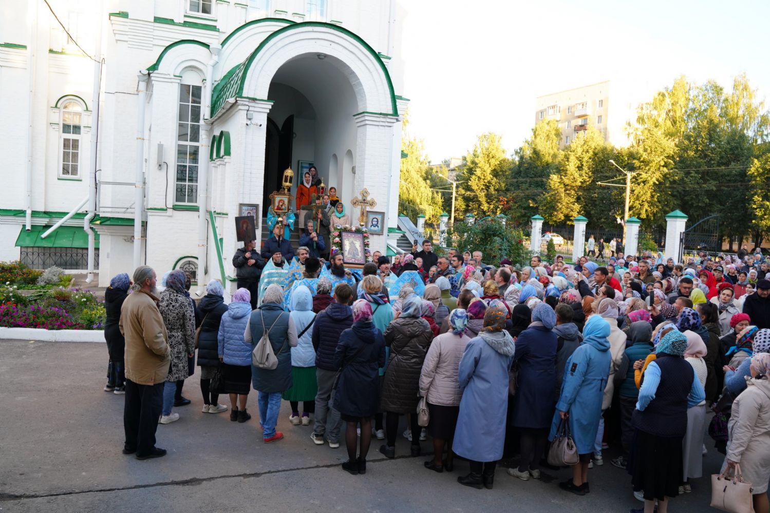 Вечером 9 сентября в Тихвинском храме г. Йошкар-Олы было совершено всенощное бдение. Множество верующих собралось помолиться Божией Матери перед Ее иконой "Мироносицкая", которая в рамках крестного хода была принесена в храм.