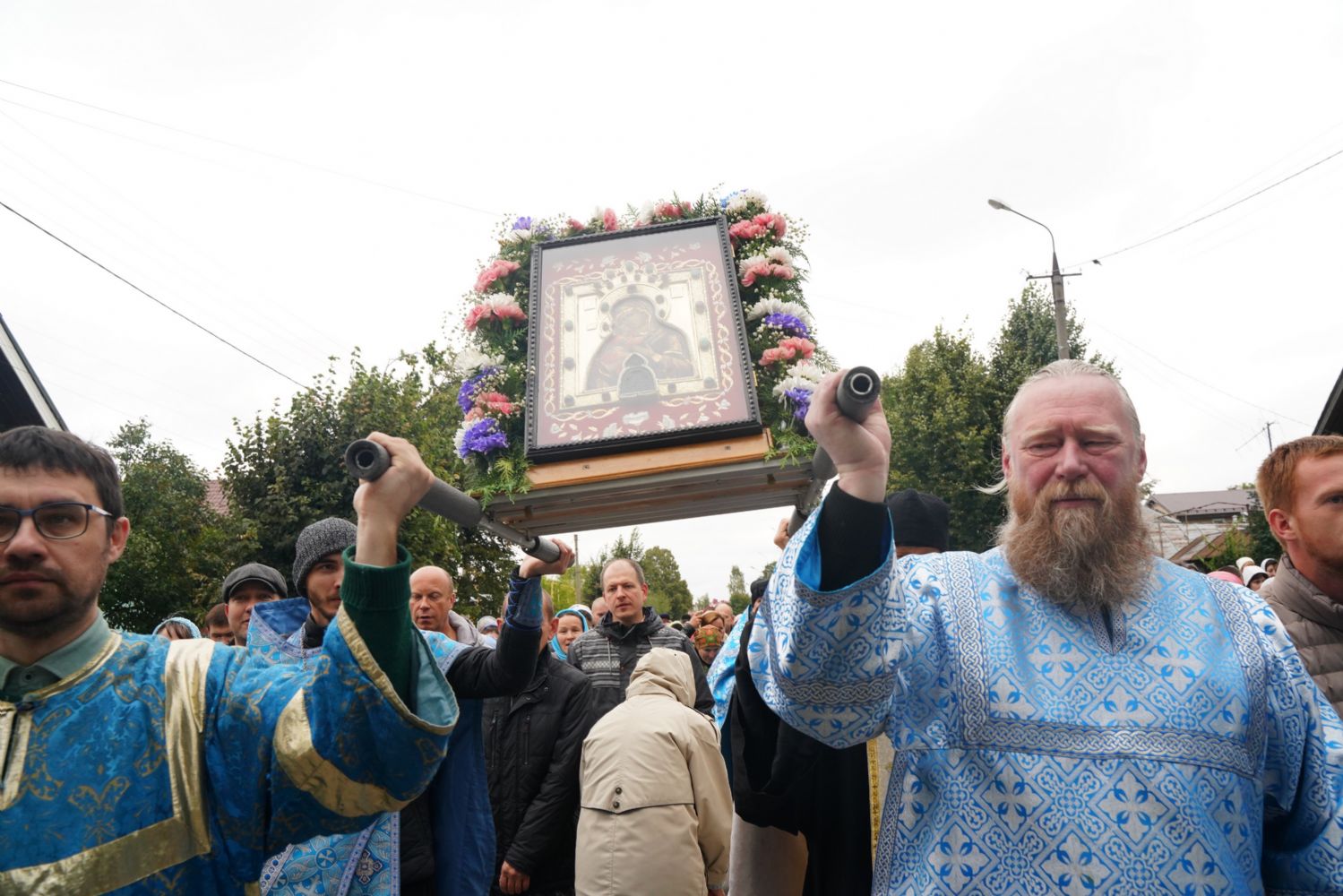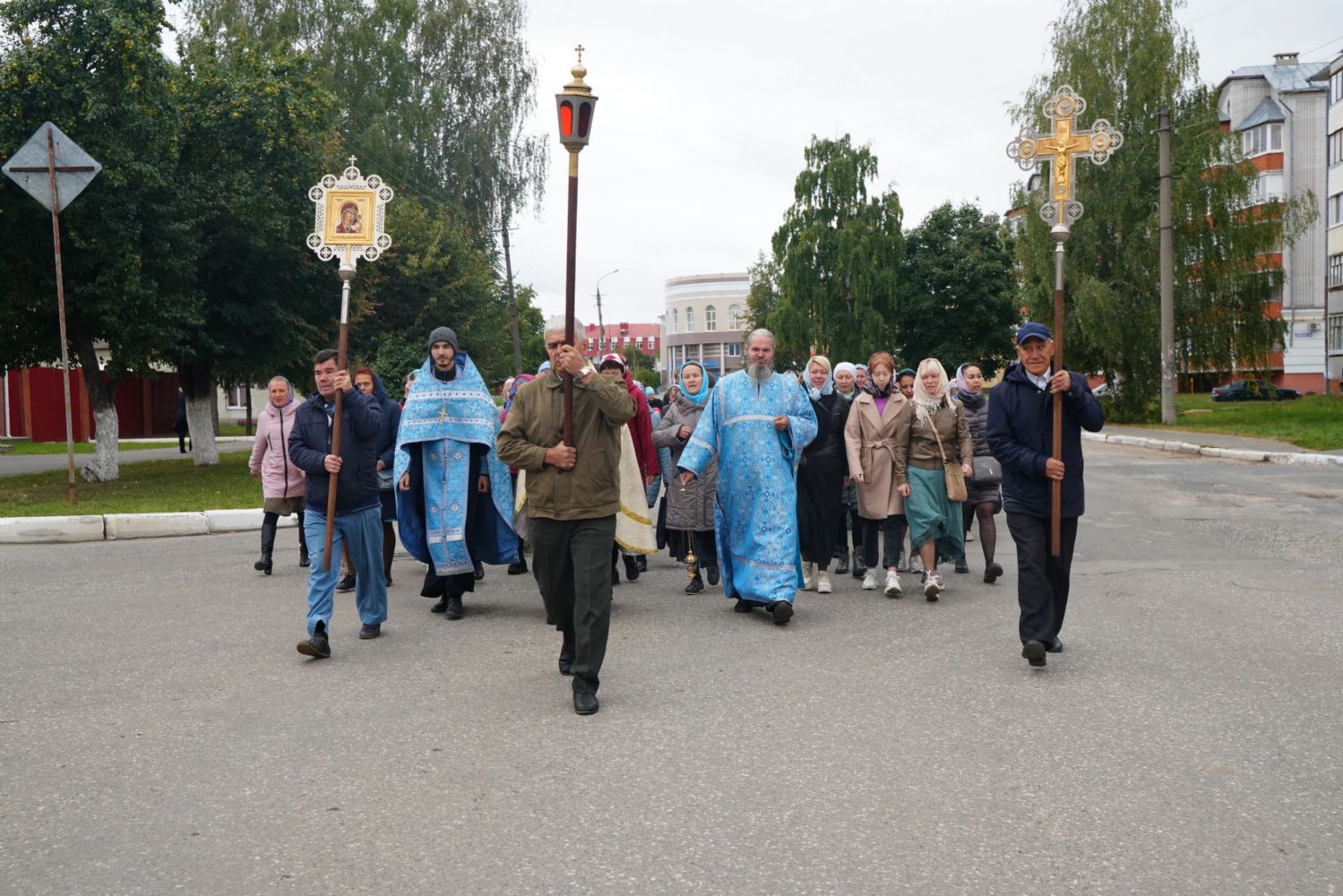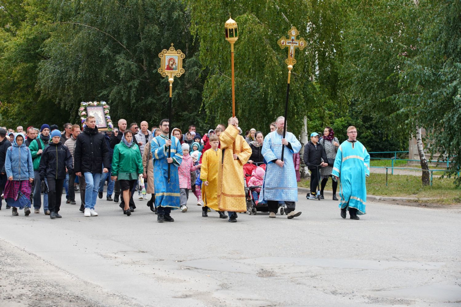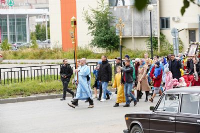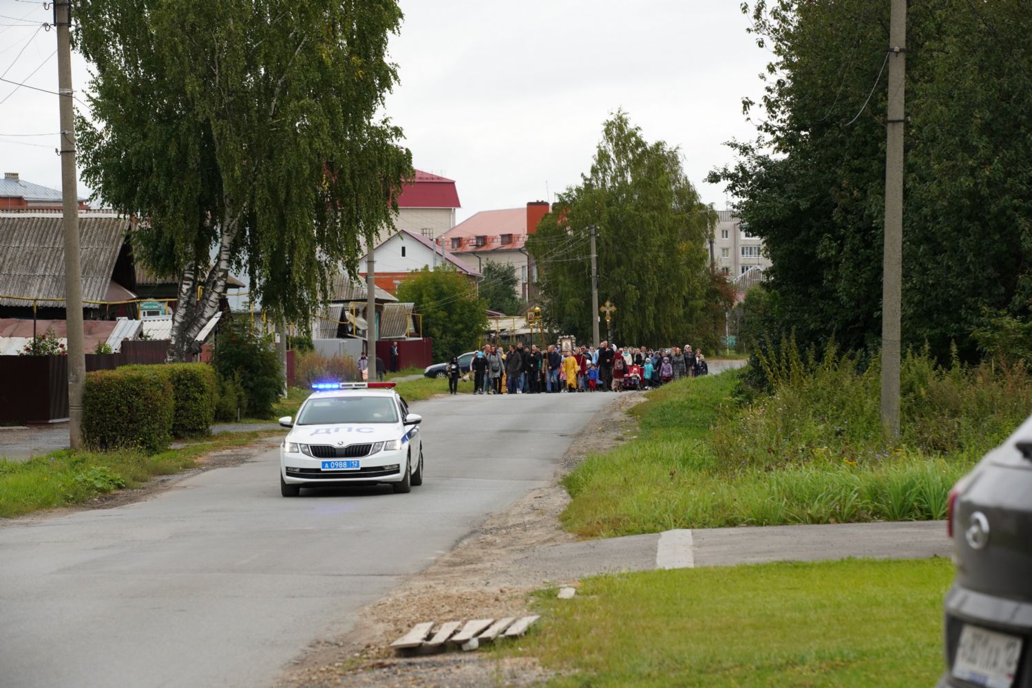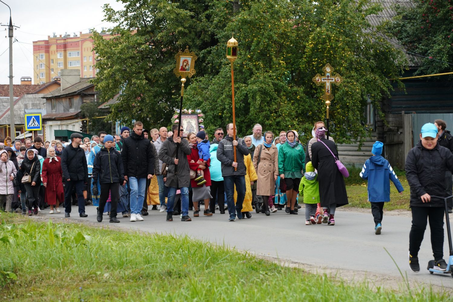 Молитвенное шествие данного этапа возглавил настоятель Христорождественского храма иерей Александр Лоскутов. Верующие шли с архангельским благовестием Всепетой Богородице, многие несли домашние иконы Пречистой.