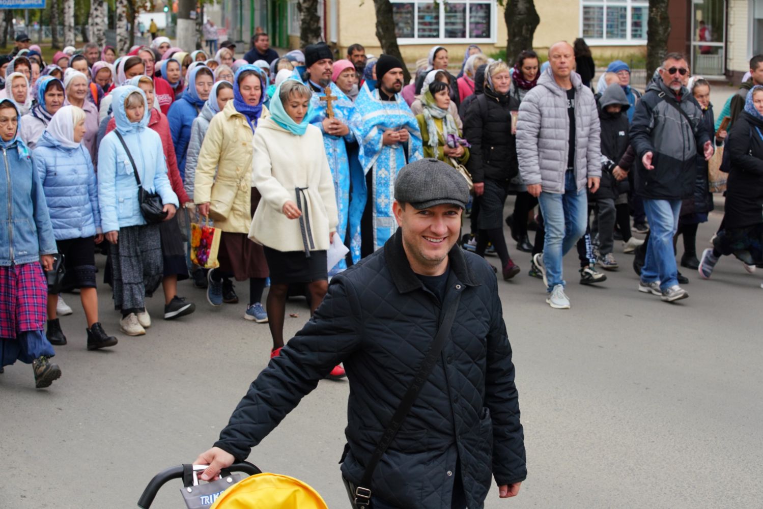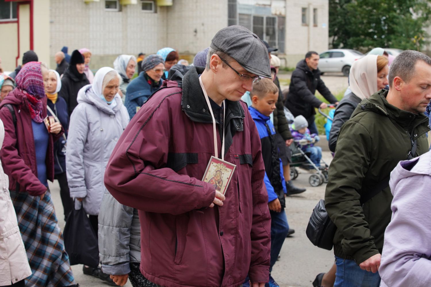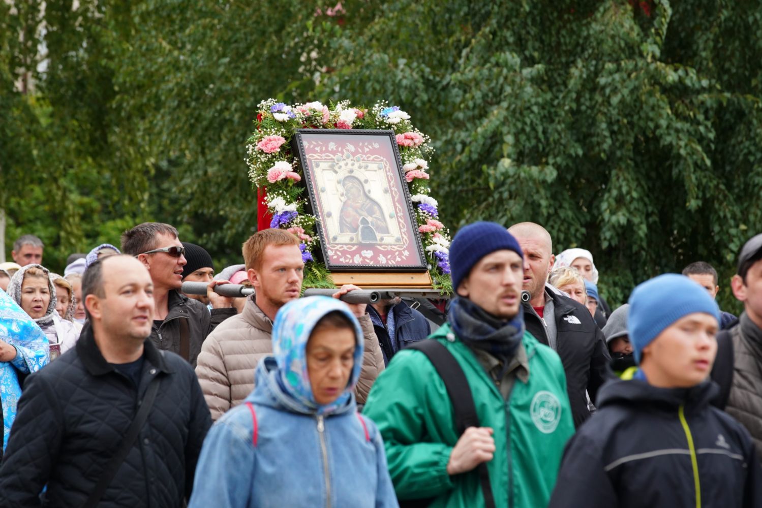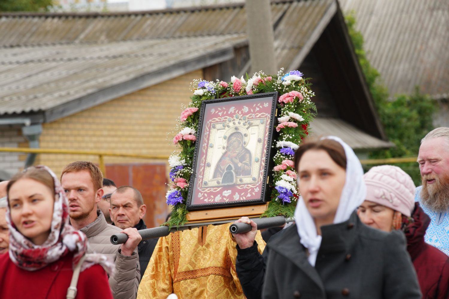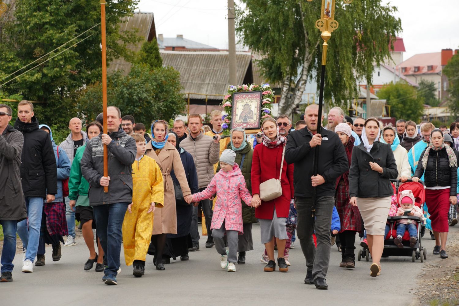Молитвенное шествие данного этапа возглавил настоятель Христорождественского храма иерей Александр Лоскутов. Верующие шли с архангельским благовестием Всепетой Богородице, многие несли домашние иконы Пречистой.