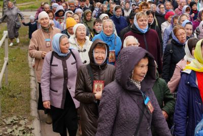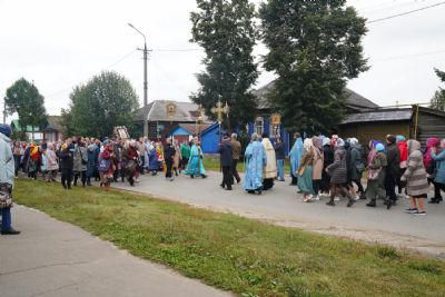 В поселке Медведево навстречу с хоругвями уже двигались священнослужители и прихожане храма Державной иконы Богородицы. Объединившись в один поток, крестоходцы двинулись к храму, где путь им устилала дорожка из цветов и раздавался колокольный трезвон. Верующие благоговейно приложились к чудотворной иконе, священник окропил всех святой водой. А вечером в храме, где Мироносицкая икона осталась до утра, было совершено всенощное бдение.