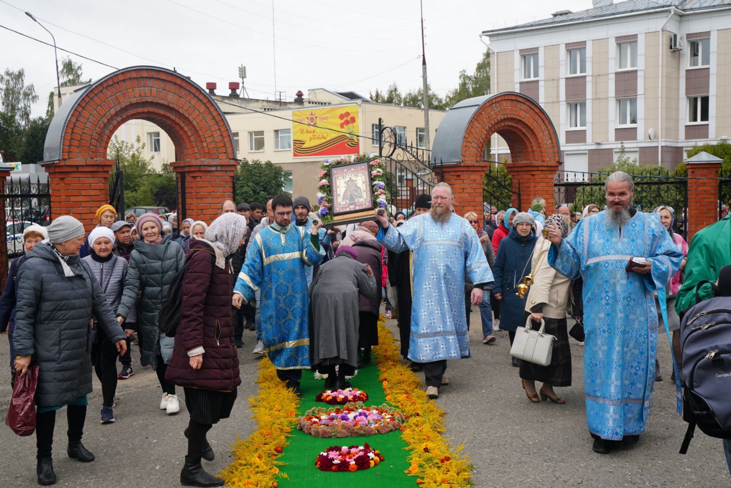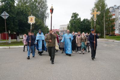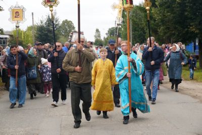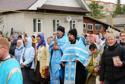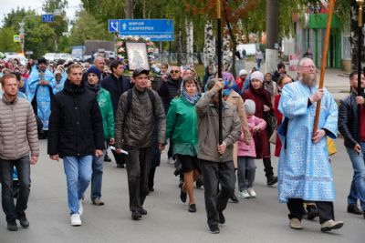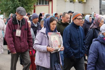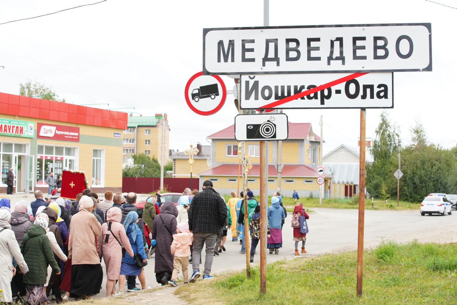 10 сентября после Божественной литургии в храме Рождества Христова г. Йошкар-Олы крестный ход с Мироносицкой иконой Пресвятой Богородицы отправился дальше - путь лежал в поселок Медведево, в храм Державной иконы Божией Матери.