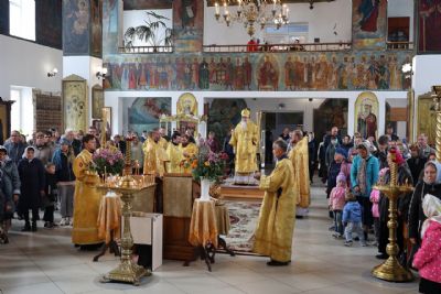 Его Преосвященству сослужили клирики собора. Песнопения исполняли архиерейский хор и детско-юношеский хор «Славословие».