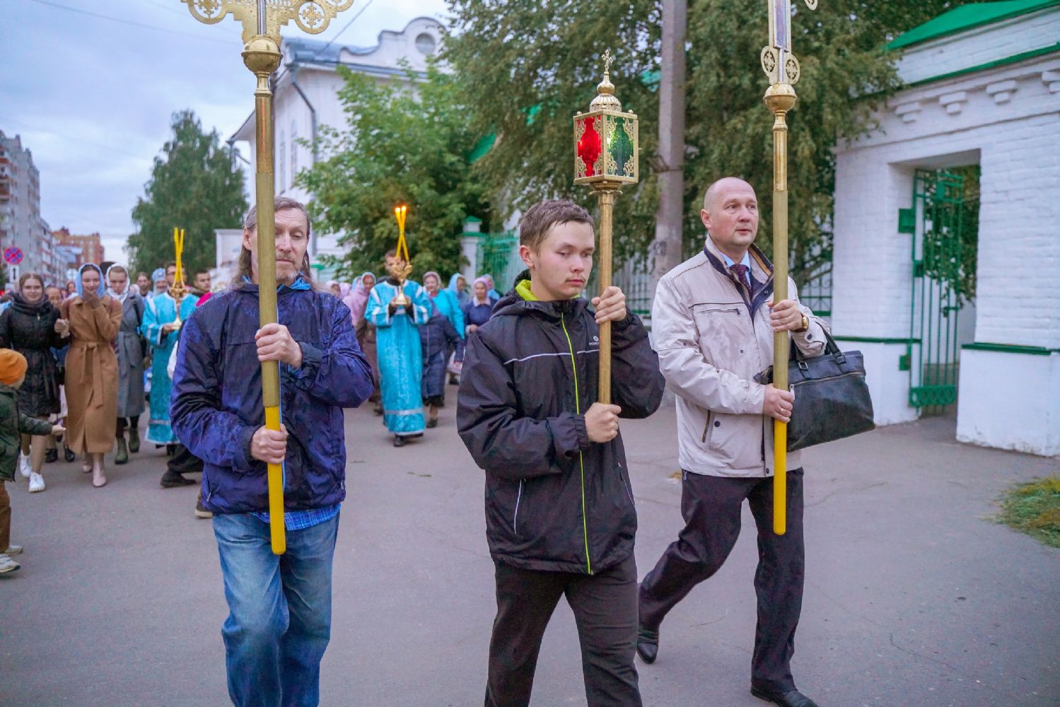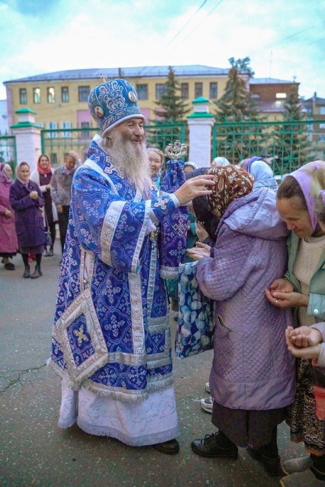 12 сентября вечером, после встречи крестного хода с Мироносицкой иконой Пресвятой Богородицы, митрополит Йошкар-Олинский и Марийский Иоанн возглавил всенощное бдение в домовом храме епархиального управления.