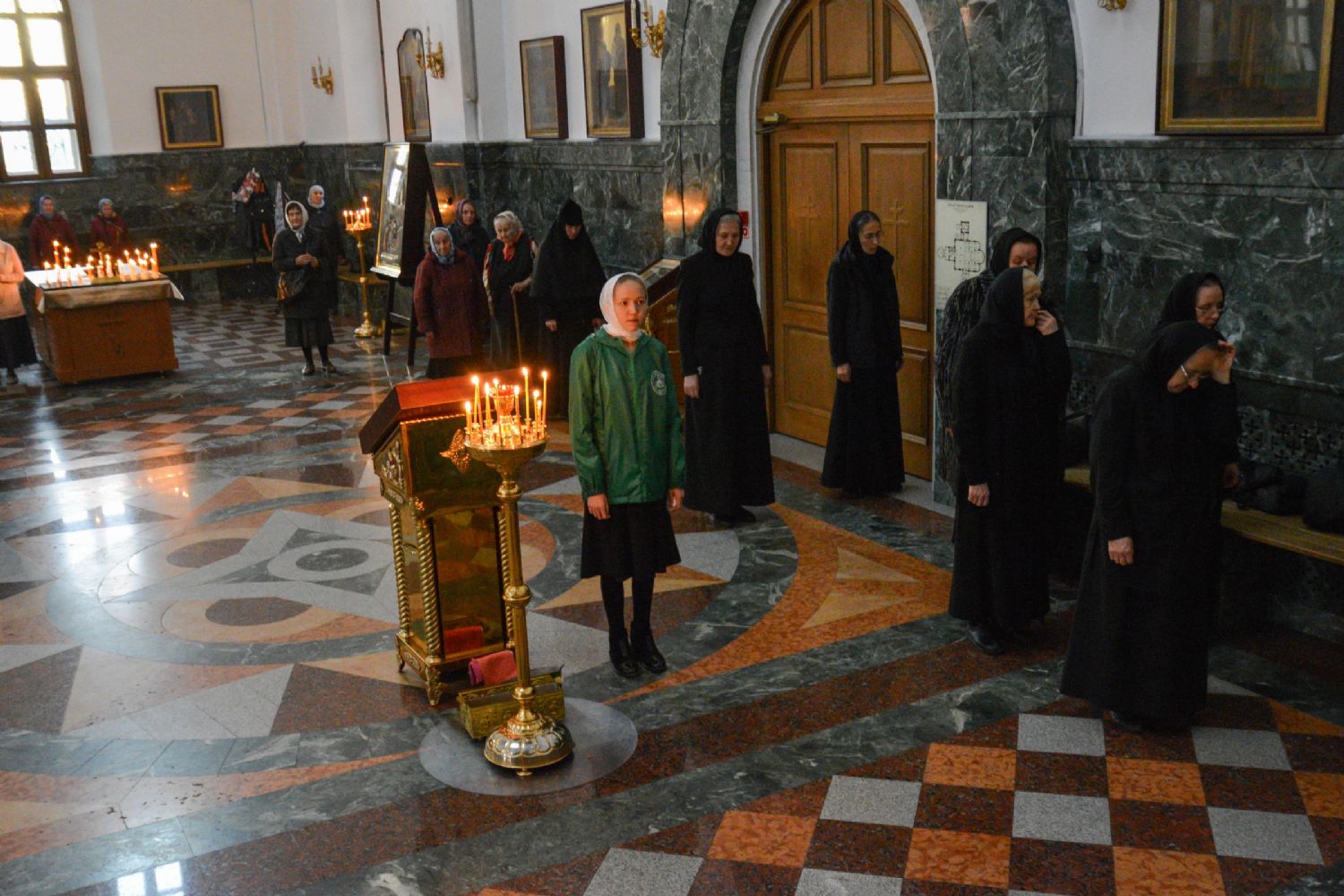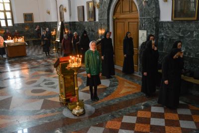 14 января в Троицком соборе Свято-Троицкого Серафимо-Дивеевского женского монастыря было совершено вечернее богослужение: малая вечерня с акафистом преподобному Серафиму Саровскому и всенощное бдение.