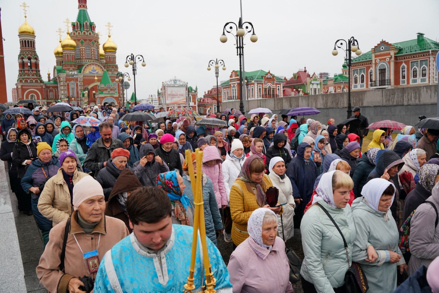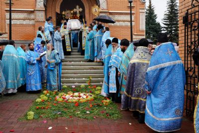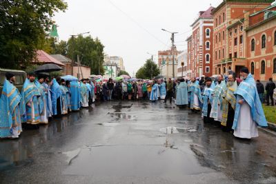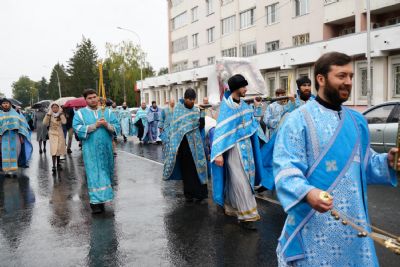 После Литургии был совершен молебен на новолетие, и далее крестный ход с Мироносицкой иконой Божией Матери отправился в Успенский храм г. Йошкар-Олы. Пресвятая Богородица освятила Своим шествием улицы города. Около строящегося Входоиерусалимского храма, Православного центра и домового храма мученицы Татианы делались остановки с молитвами Пречистой и кроплением святой водой.