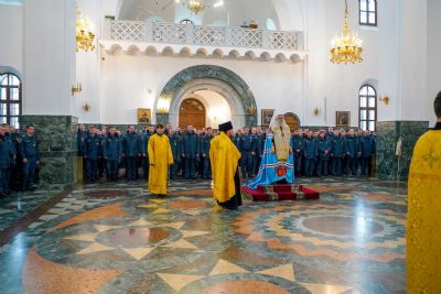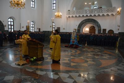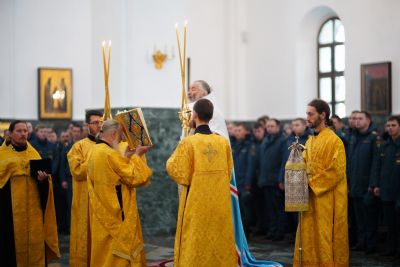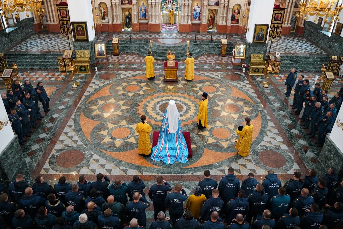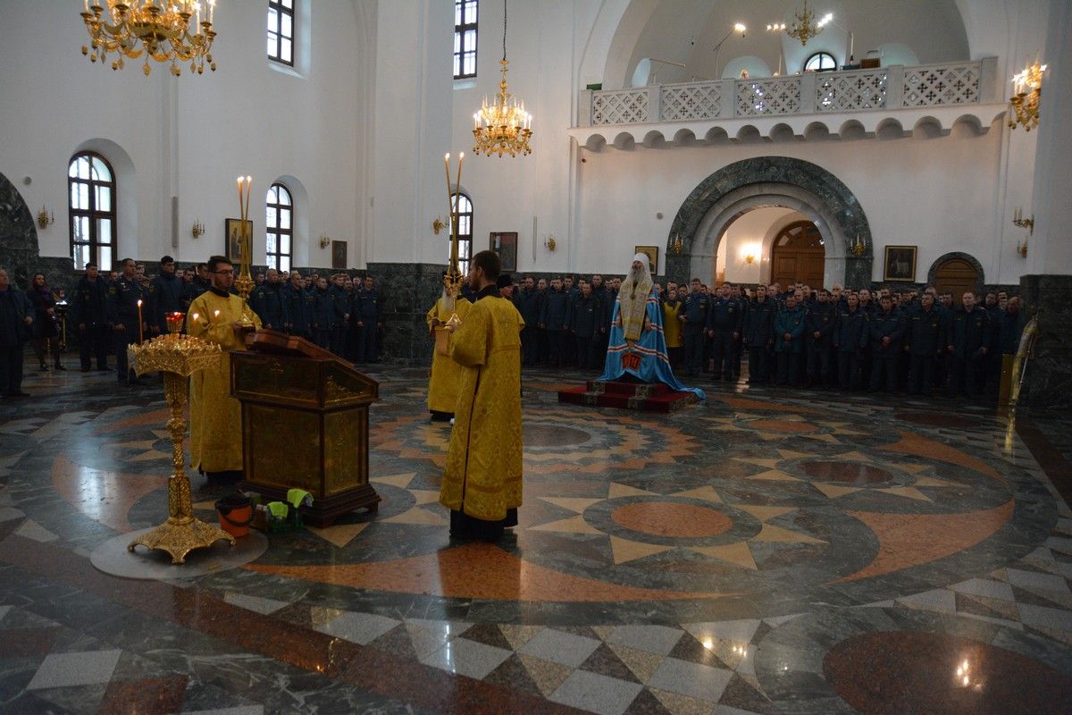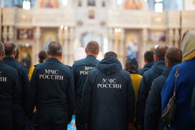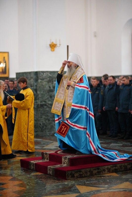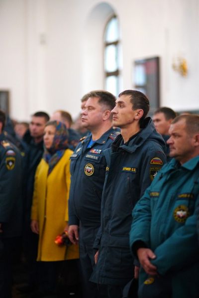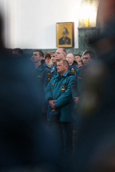 Молебен возглавил митрополит Йошкар-Олинский и Марийский Иоанн. Владыке сослужили клирики храма Рождества Пресвятой Богородицы с. Семеновка иерей Димитрий Иванов и протодиакон Михаил Козловский. За богослужением молились руководство и сотрудники Главного управления МЧС России по Республике Марий Эл, Управления государственный противопожарной службы Республики Марий Эл, бойцы пожарно-спасательных подразделений.