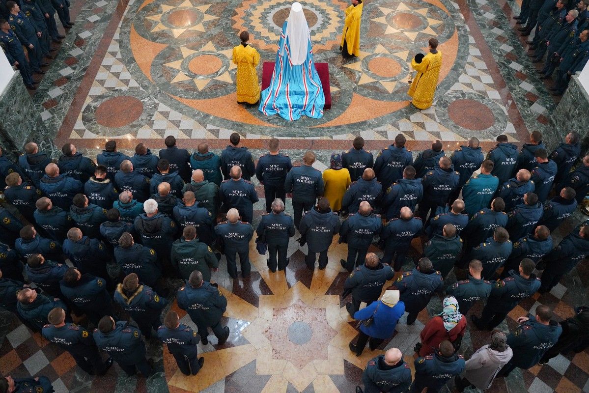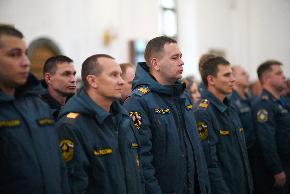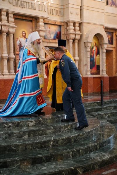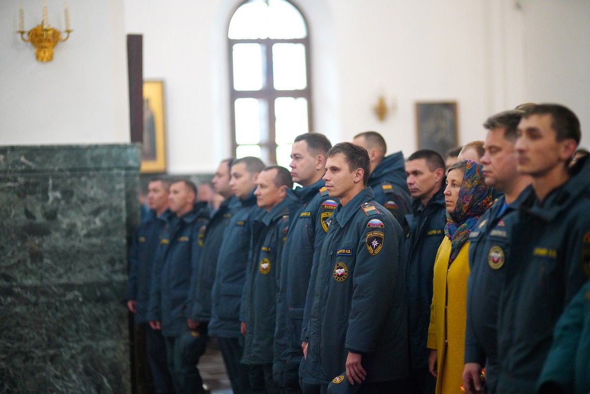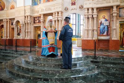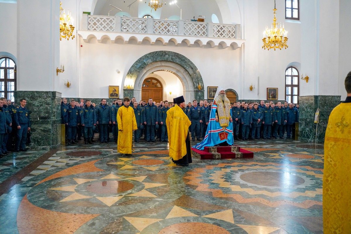 На молитвенную память сотрудникам МЧС митрополит Иоанн преподнес икону Божией Матери «Неопалимая Купина», пожелав в любое мгновение жизни прибегать за помощью к Пресвятой Богородице, Которая с нами до скончания века и никогда не оставит того, кот прославляет Ее архангельским благовестием и соблюдает заповеди Господни.