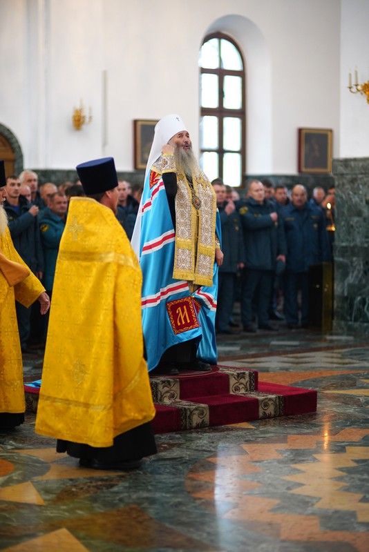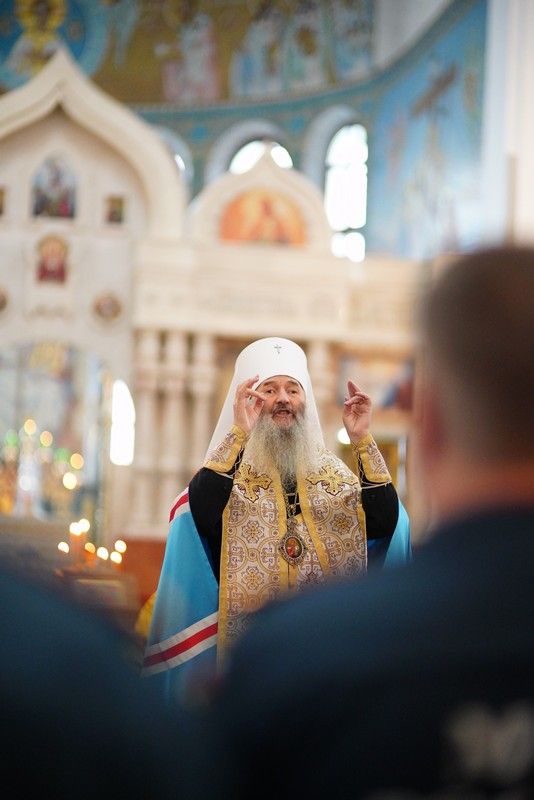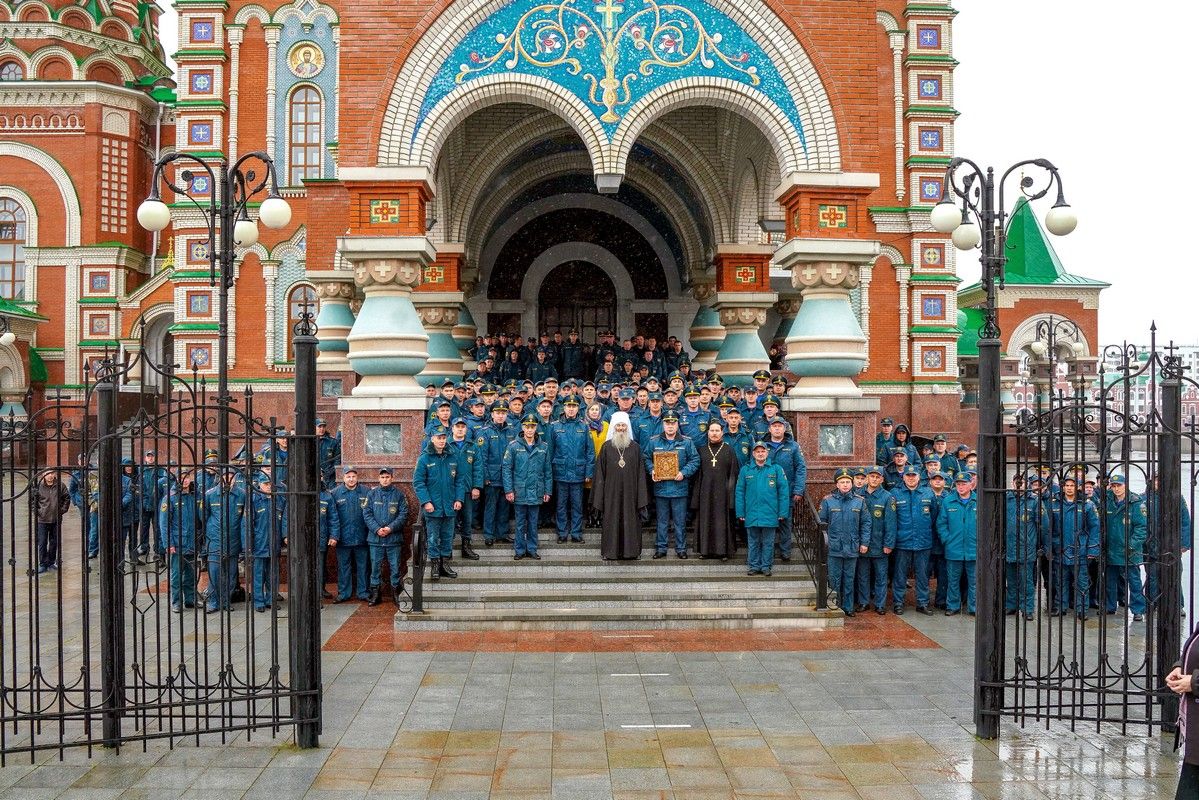 «Милостью Божией в этот торжественный для вас день мы собрались в соборном храме Благовещения Пресвятой Богородицы, чтобы возблагодарить Царицу Небесную за ту милость и любовь, которая Она являла вам в течение этого сложного года. Вновь наш марийский край был объят пламенем, вновь вам, дорогие братия, пришлось много потрудиться, борясь с огнем, вновь Господь испытывал наше мужество и крепость в служении святой державе Российской. И многие в этом году, совершая свой подвиг, отошли в иной мир. И мы сегодня молились, чтобы Господь почивших наших собратьев учинил в Царстве Небесном, чтобы вечная память их подвига оставалась в наших сердцах и была для нас образцом для духовного подражания, ведь они исполнили великое служение Сладчайшему Спасителю, Который сказал: нет больше любви, если кто жизнь свою положит за друзей своих.