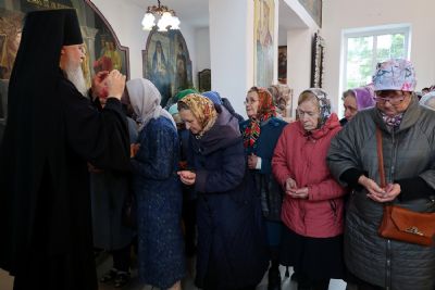 По окончании Литургии епископ Феофан обратился к верующим с проповедью, рассказав о житии святых благоверных князя Петра и княгини Февронии Муромских – их память Церковь празднует дважды в году: 8 июля, в день их кончины, и в воскресный день накануне 19 сентября (перенесение их мощей).