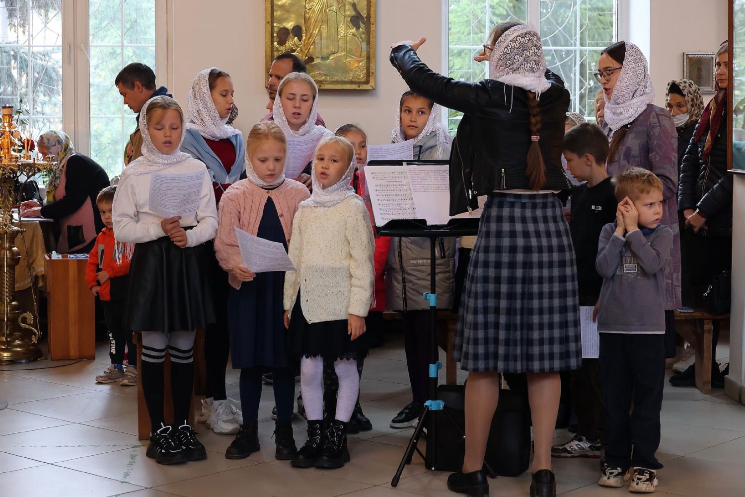 Его Преосвященству сослужили клирики собора, песнопения исполняли архиерейский хор и детско-юношеский хор «Славословие» под управлением регента Марии Захаровой.