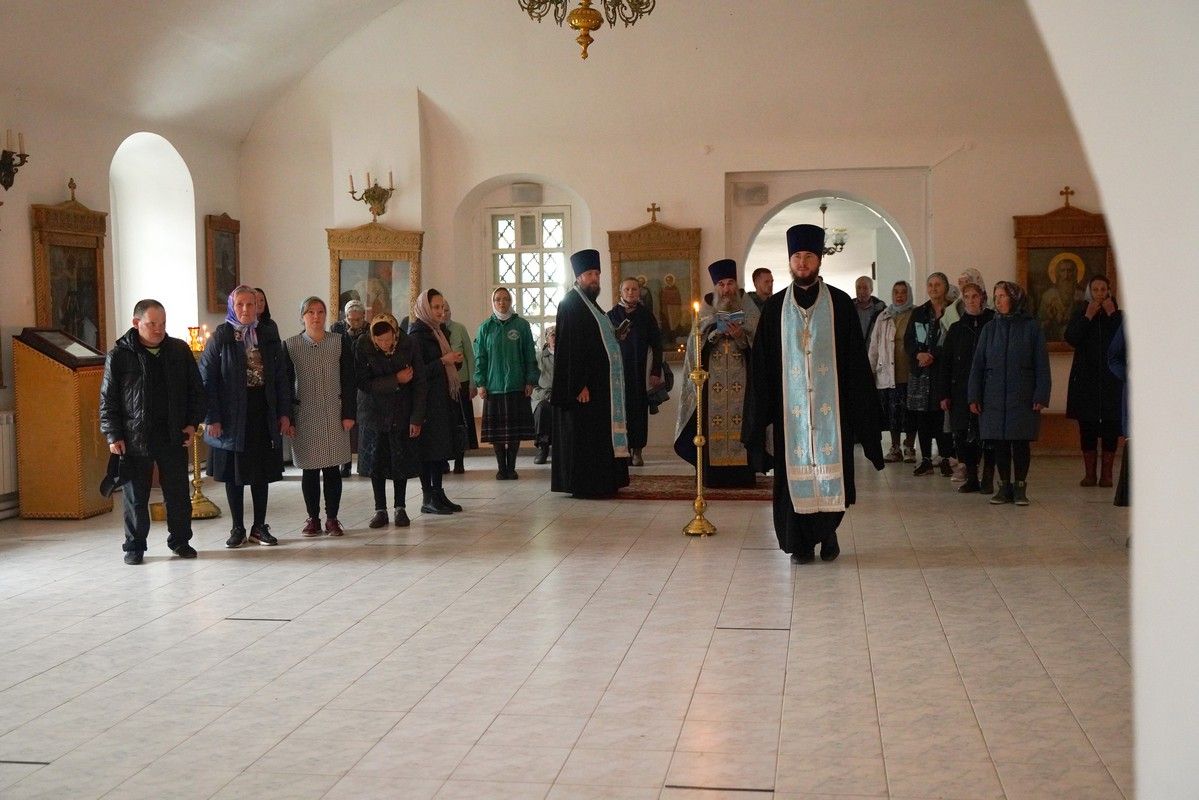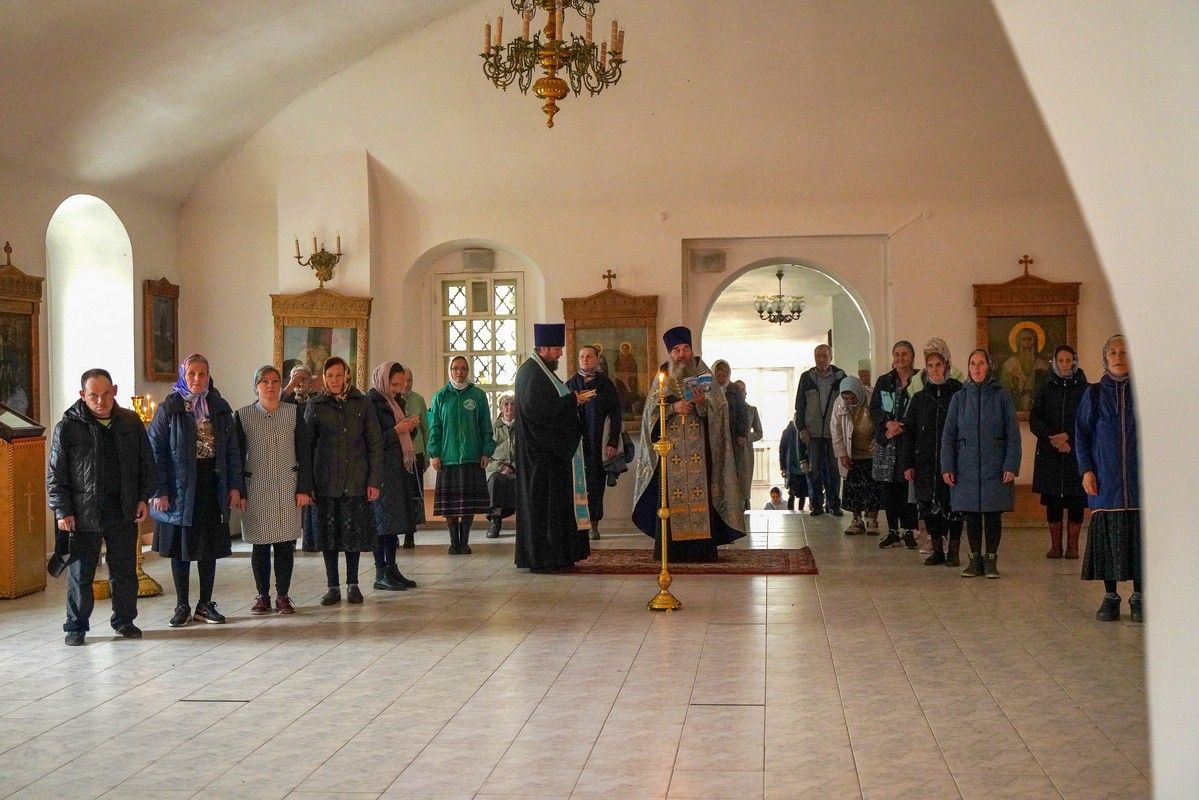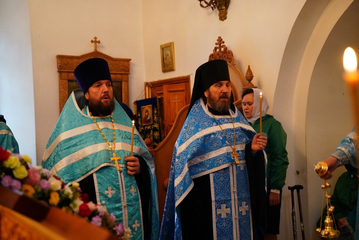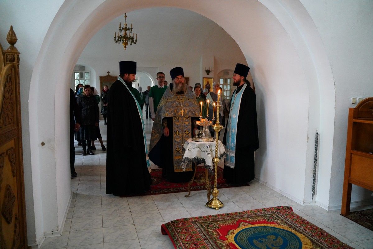 Архипастырю сослужили секретарь Йошкар-Олинского епархиального управления иеромонах Серафим (Пасанаев), благочинный Йошкар-Олинского церковного округа протоиерей Андрей Норкин, клирик монастыря иерей Михаил Лежнин, клирик Вознесенского собора г. Йошкар-Олы иерей Димитрий Копылов и протодиакон Михаил Козловский. Песнопения исполнял детско-юношеский хор «Благовест» под руководством регента Татьяны Черновой.